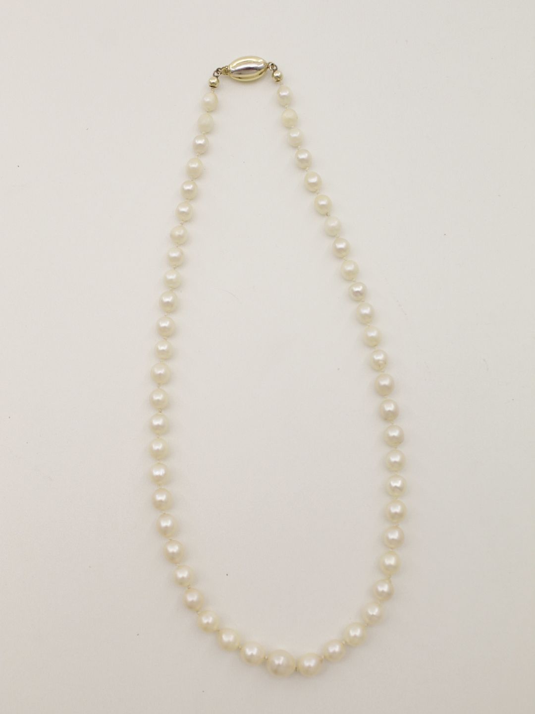 Pearl necklace 46 cm. with culture pearls 0.6-0.9 cm. 14 karat gold lock no. 338928
