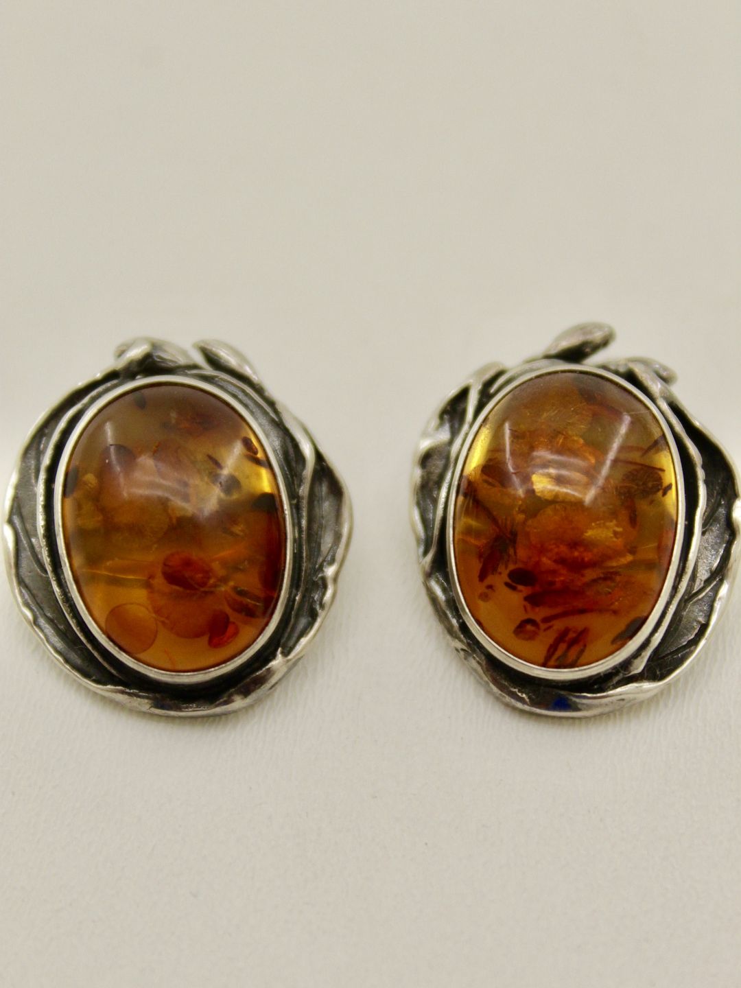Sterling silver ear clip 1.9 x 2.2 cm. with amber stamped STD 925s Nr. 340886