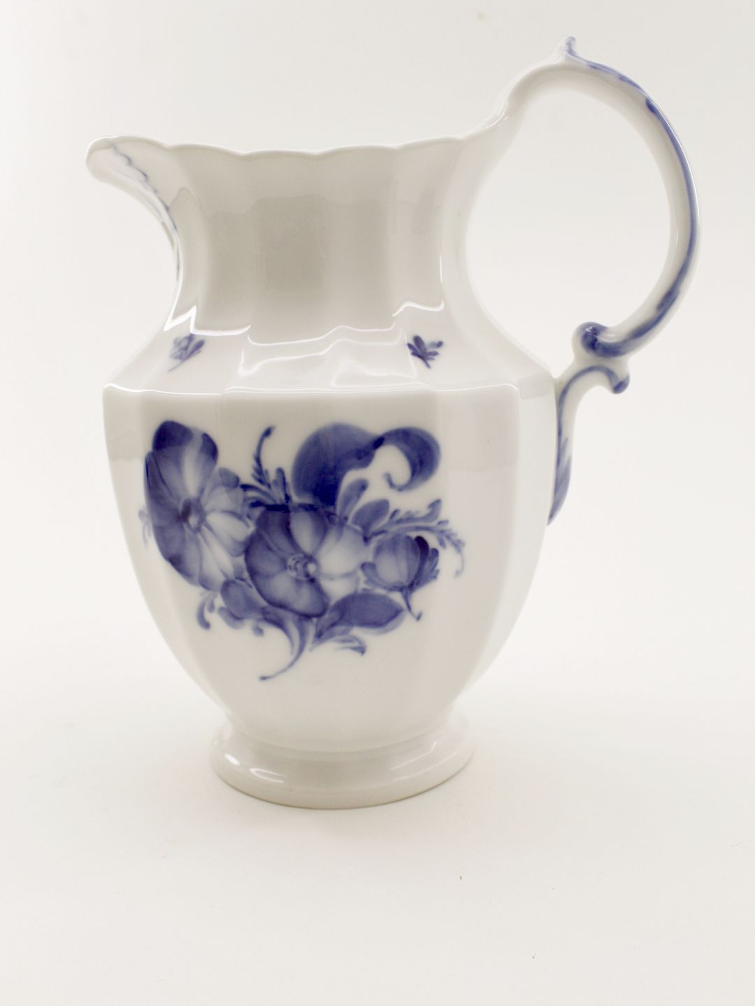 Royal Copenhagen blå blomst kantet stor kande med låg 10/8606 1.sort. H 25 cm. Nr. 343976