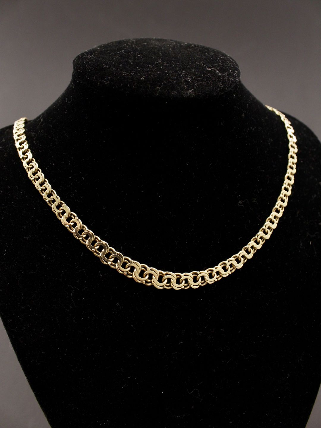 14 karat gold bismarck necklace 42.5 cm. W. 0.5-0.8 cm. 21.5 gr. Stamped 585 ECL C Larsen Copenhagen Nr.344052