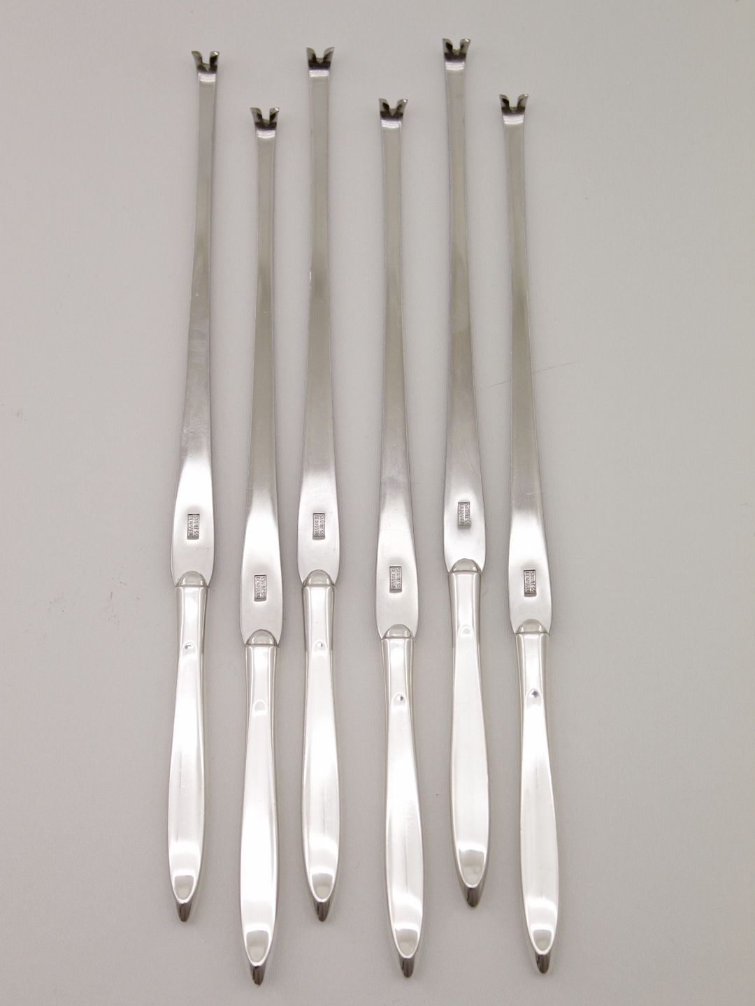6 stk hummergafler Mimosa sterling sølv og stål L. 20 cm. Nr. 344706