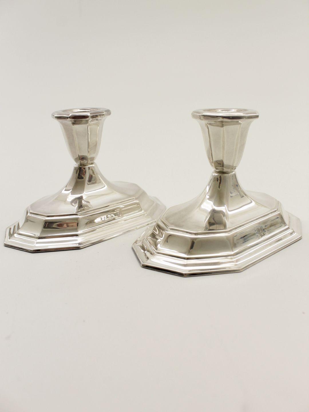 A pair of silver candlesticks H. 8.5 cm. foot 14.5 x 8.5 cm. No. 354429