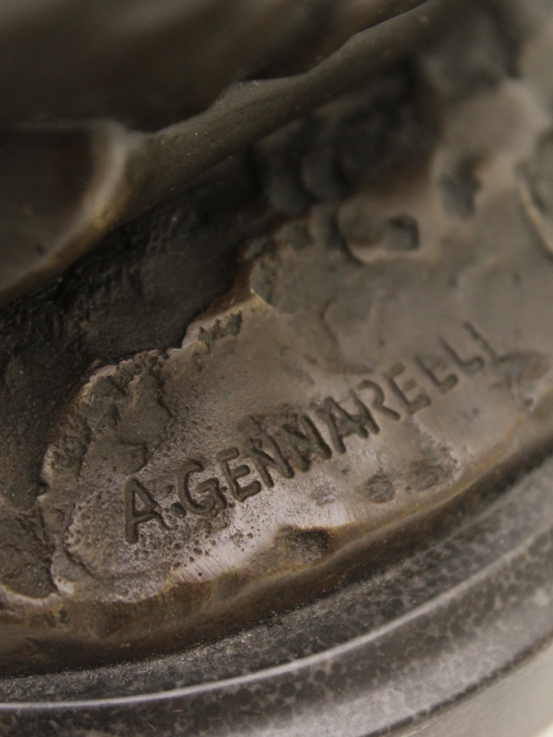 A Gennarelli 1881-1943 art deco sculpture of woman H. 25 cm. bronze on marble stand No. 347062