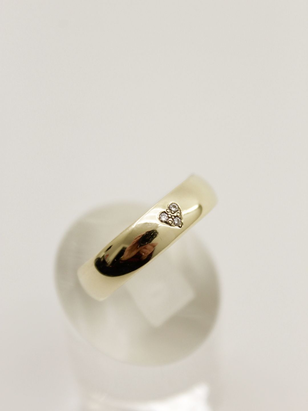 14 karat guldring størrelse 57 med 3 diamanter i hjerte form