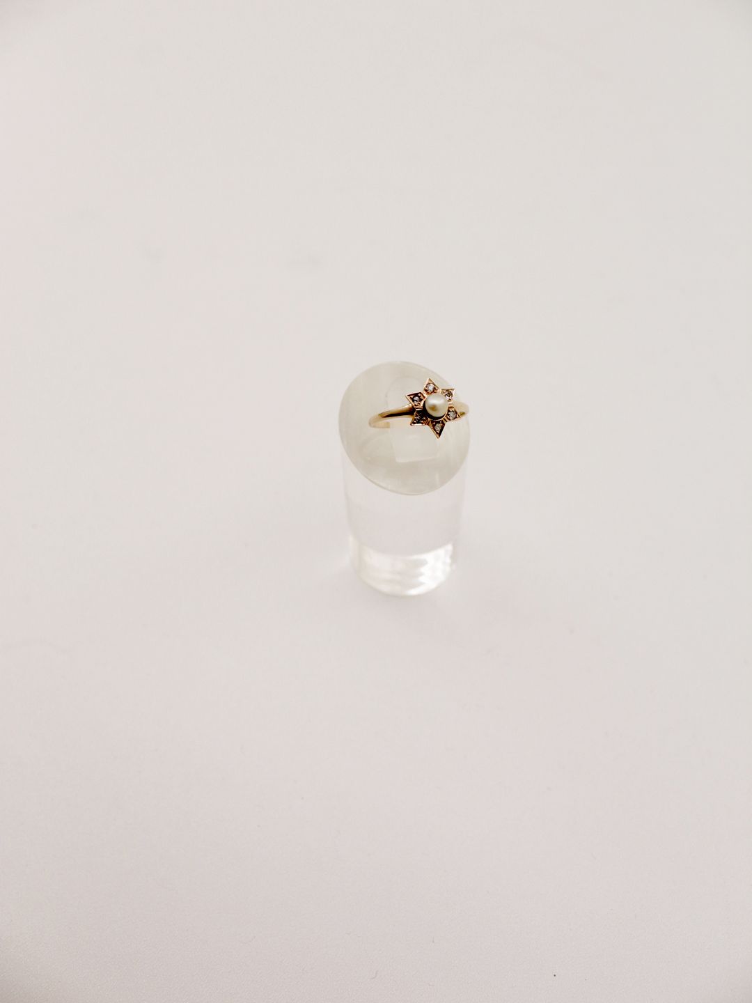 14 karat guld ring størrelse 51 med perle og 6 diamanter i stjerneform 585 BH for juveler B Hertz. Nr. 362827