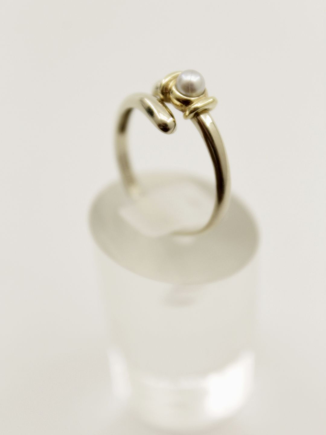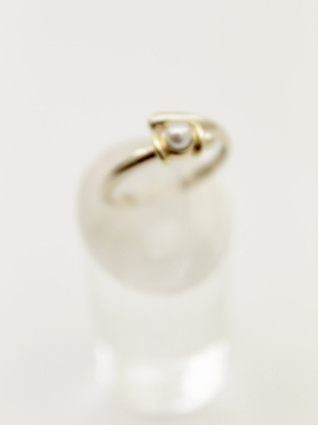 18 carat gold ring size 58 with pearl stamped 750 Ulr for goldsmith Henning Ulriksen Kgs.Lyngby. No. 363819