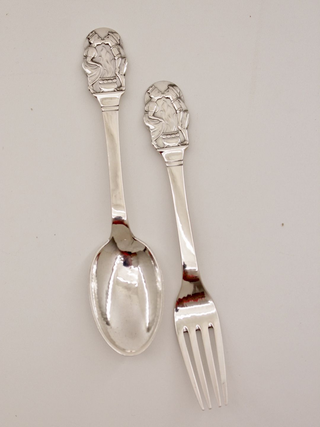 Evald Nielsen 830s barne bestik 17 cm. H C Andersen "Svinedrengen" Nr. 370123