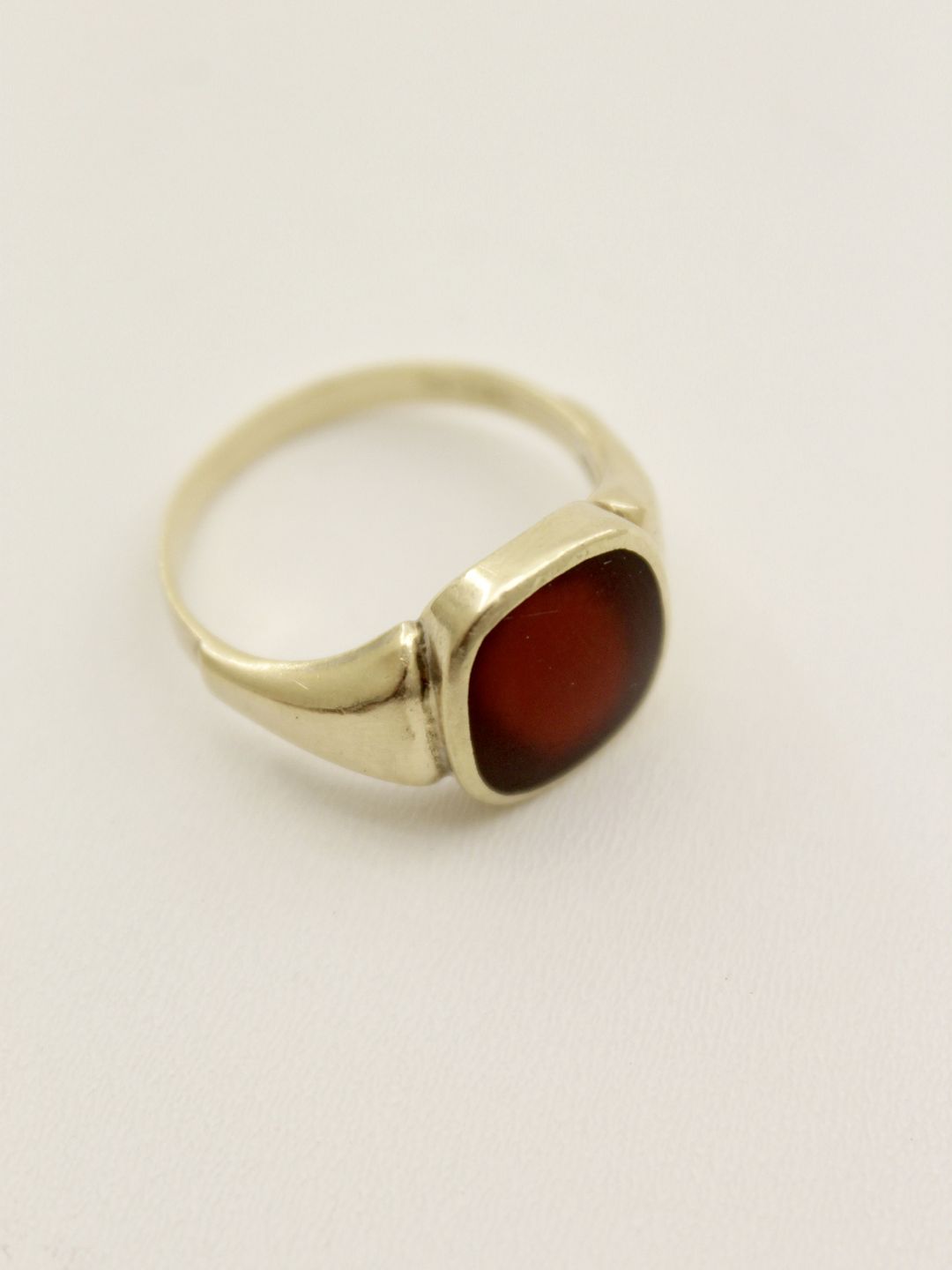 14 karat guld ring størrelse 62 med karneol stemplet 585 HS for guldsmed Hermann Siersbøl. Nr. 371395