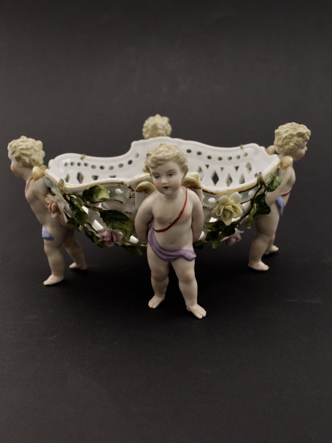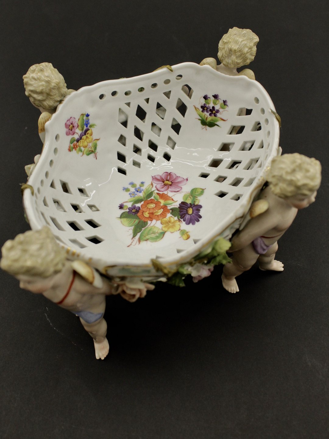 German jardiniere / bon bon bowl with flowers and putti H. 11.5 cm. and 22x18 Nr. 375202
