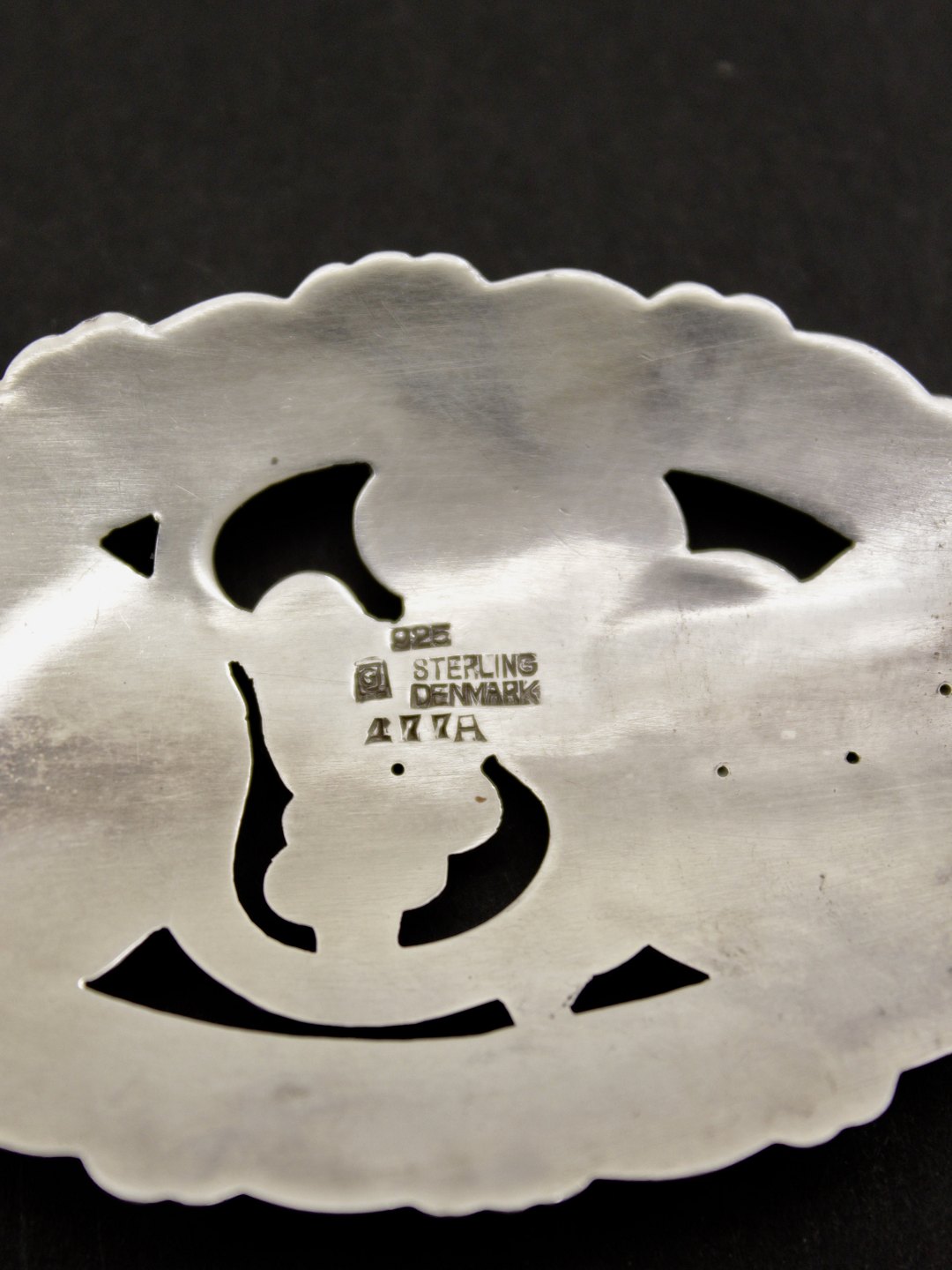 Georg Jensen sterling sølv art nouveau broche 177 A 6 x 4,2 cm. med druemotiv stempel 1933-44. Nr. 382042