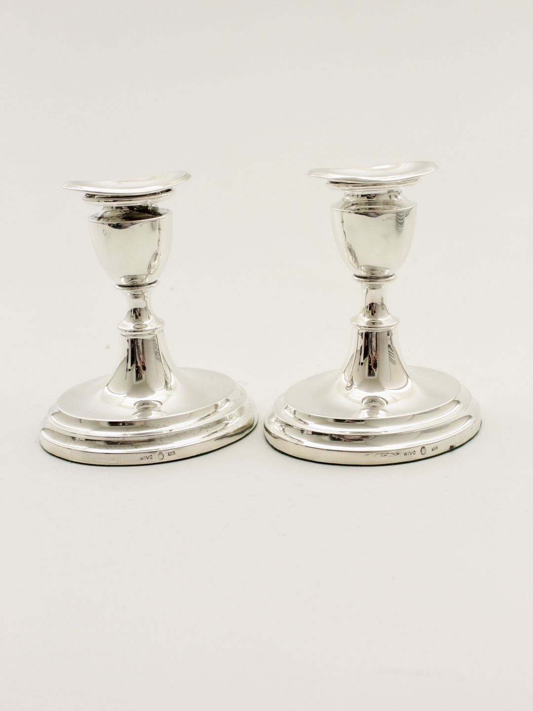 Et par tretårnet sølv lysestager 11 cm. år 1967 Fra sølvsmed Willy Volmer København Nr. 388110