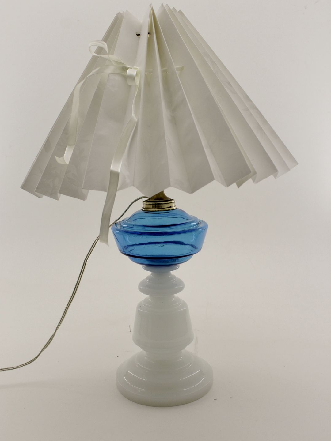 Opalini olie lampe med blå beholde forandret til el. 19.årh.