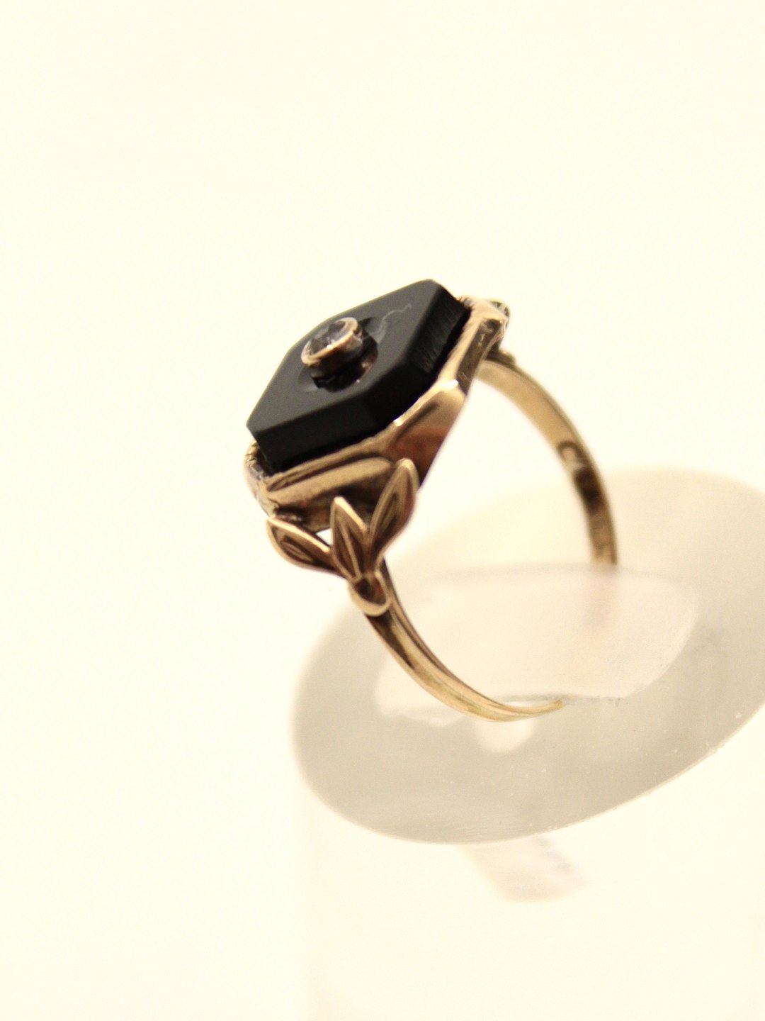 14 karat guld ring størrelse 51 med onyx 1 x 0,9 cm.