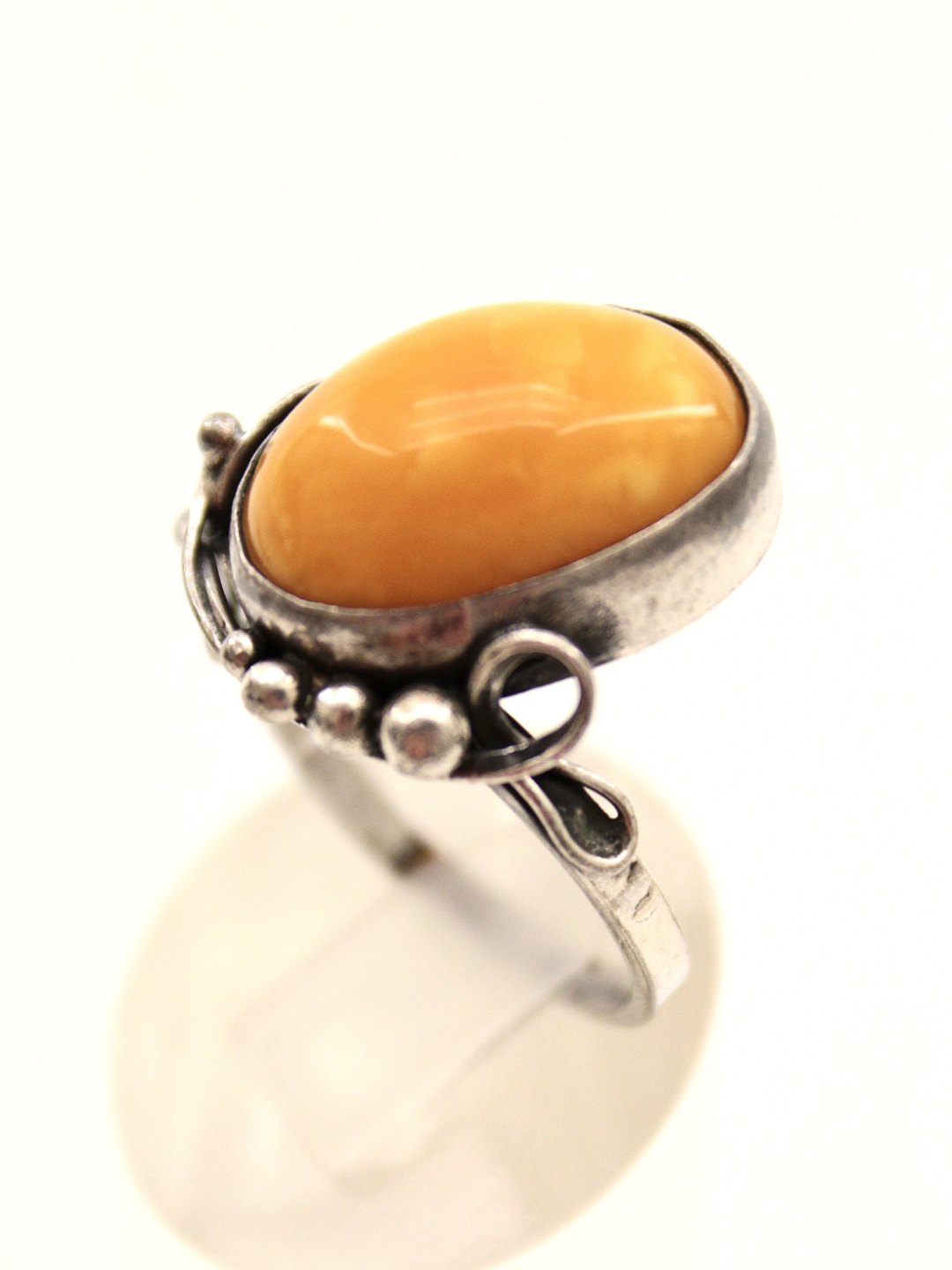 Sterling sølv ring størrelse 59 med cabochon sleben rav 1,3 x 2 cm. fra sølvsmed Povl Christensen Viby Nr. 396346