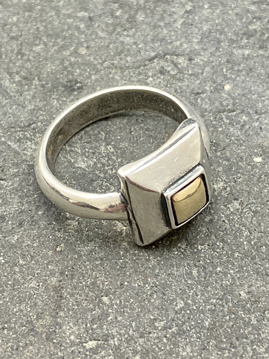Art deco sterling silver ring size 54 with gold Nr. 402229