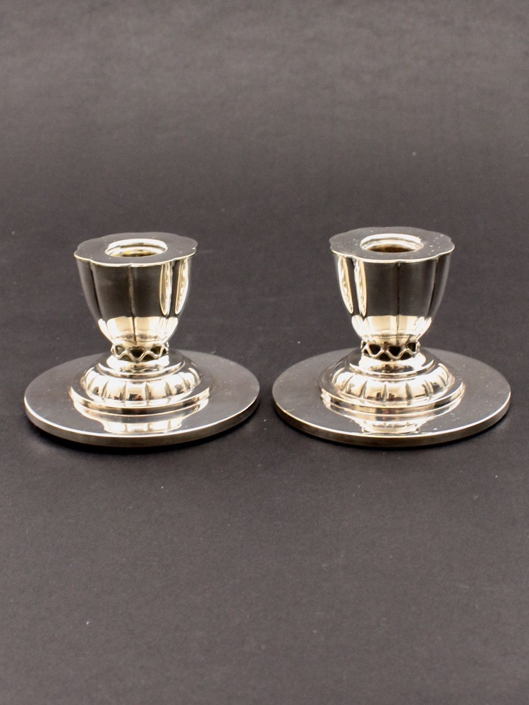 Et par forsølvede lysestager med gennembrudt stamme højde 7 cm. Nr. 405895