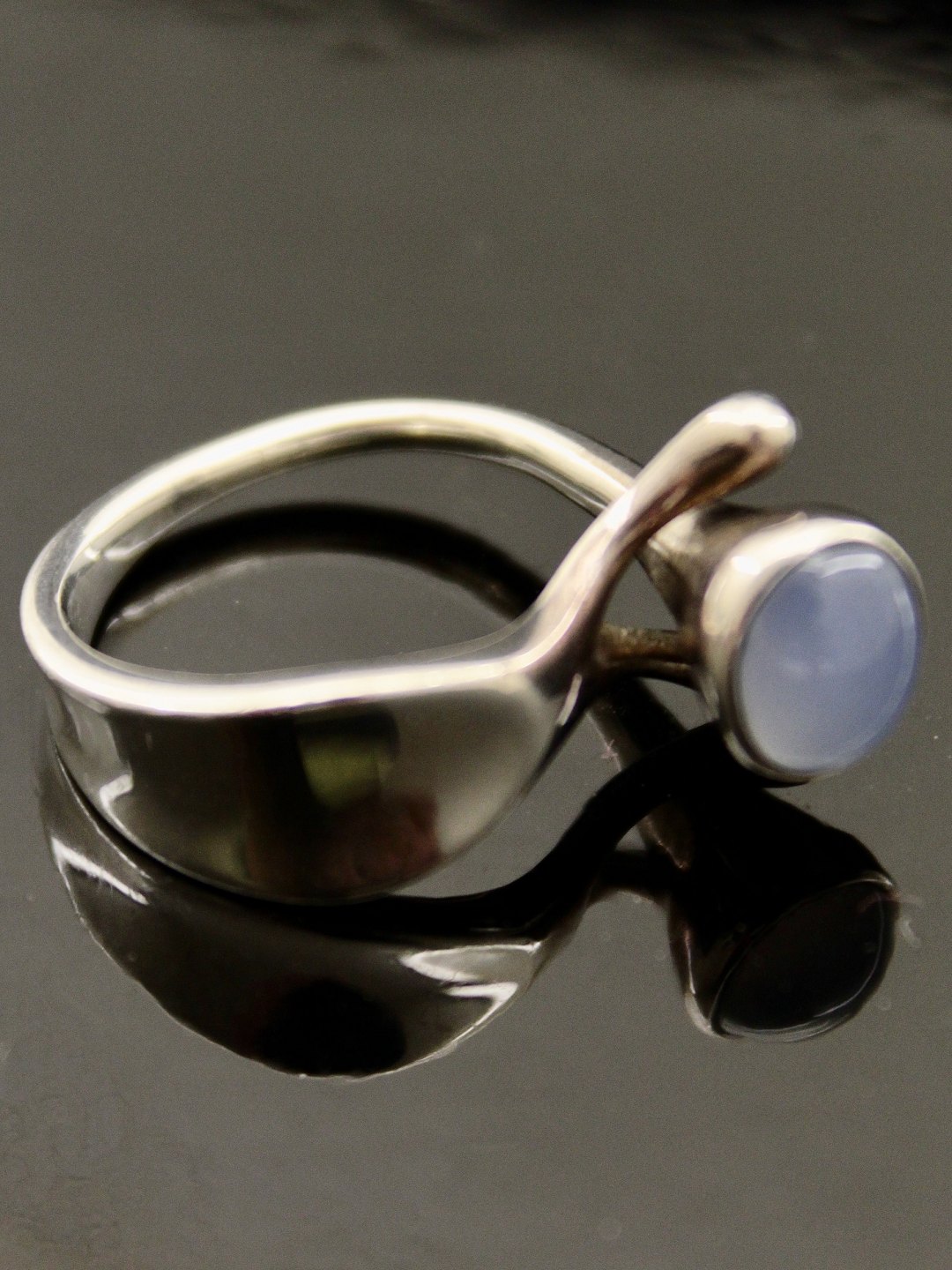 Ikonisk Georg Jensen vintage ring # 152 størrelse 53 designet af Vivianna Turan Bülow-Hübe sterling sølv med månesten Nr. 413719