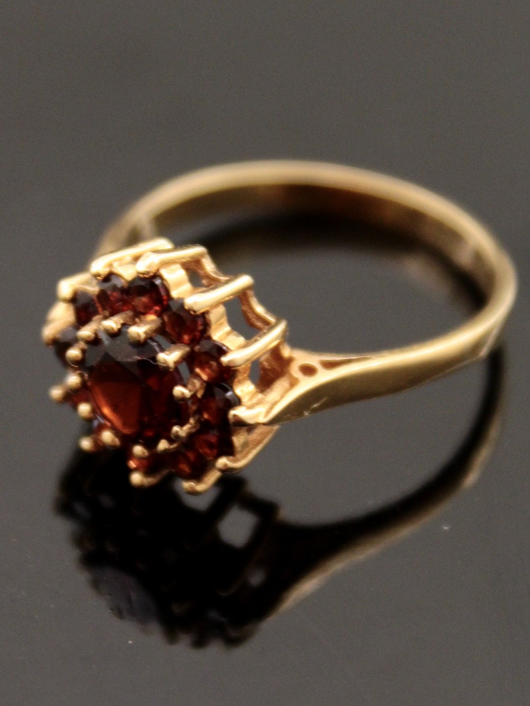 14 karat guld ring størrelse 56 med granater fra guldsmed Viggo Wollny København. Nr. 414552