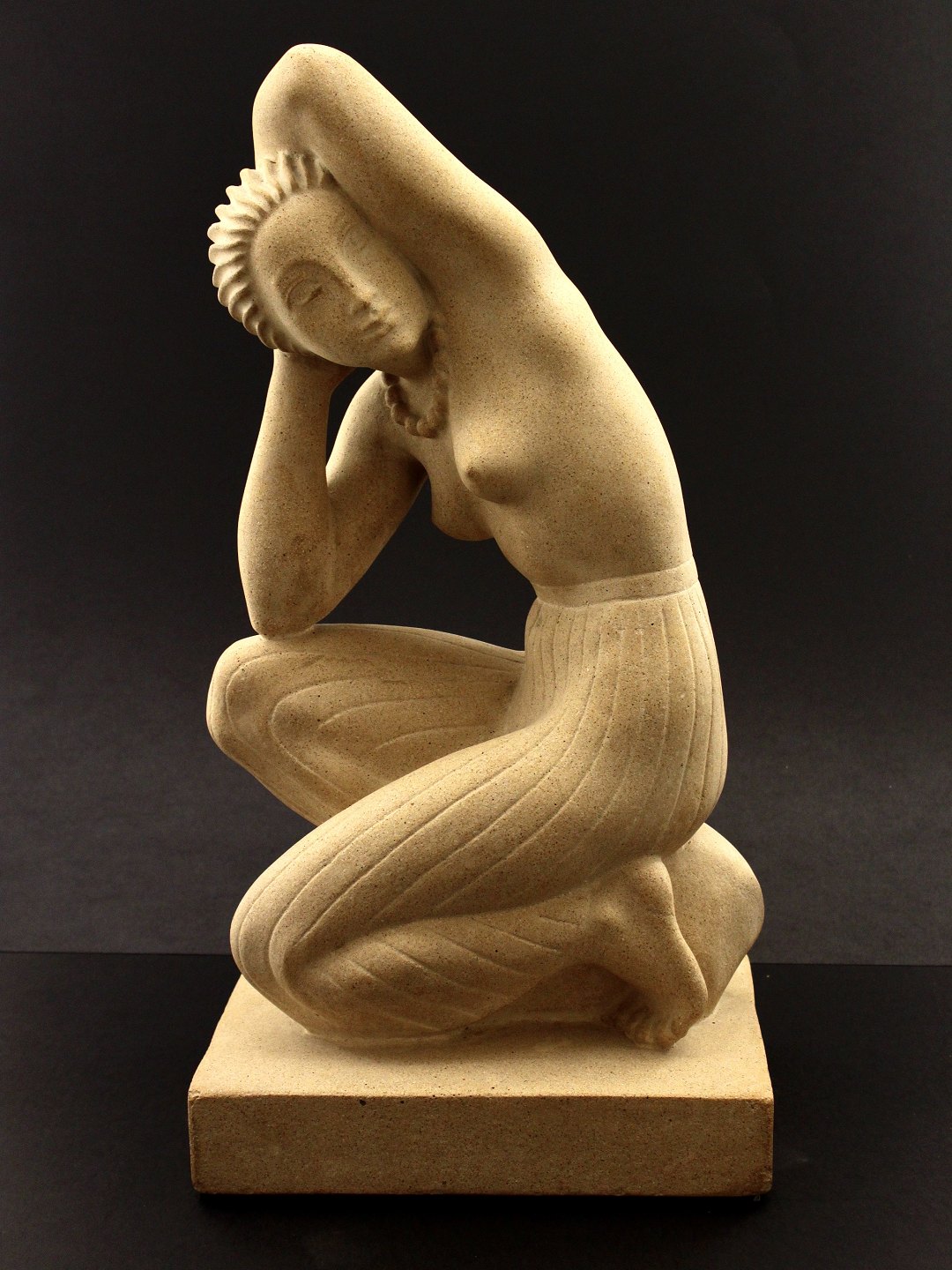 Jens Jacob Bregnøe 1877-1946 sandstone figure young girl 52 cm. signed with monogram No. 419518