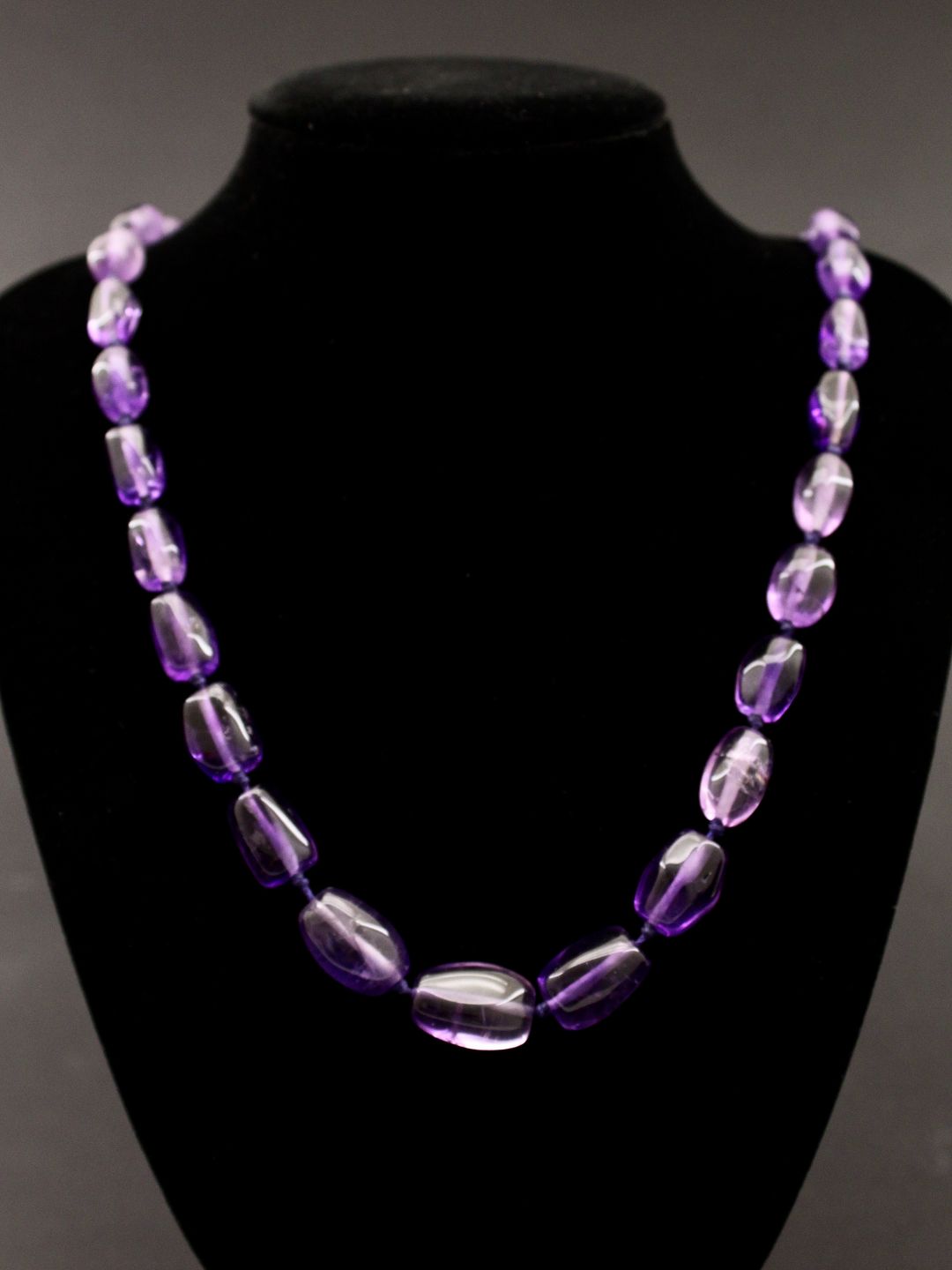 Halskæde med ametyster 57 cm. med sølv lås Nr. 421011