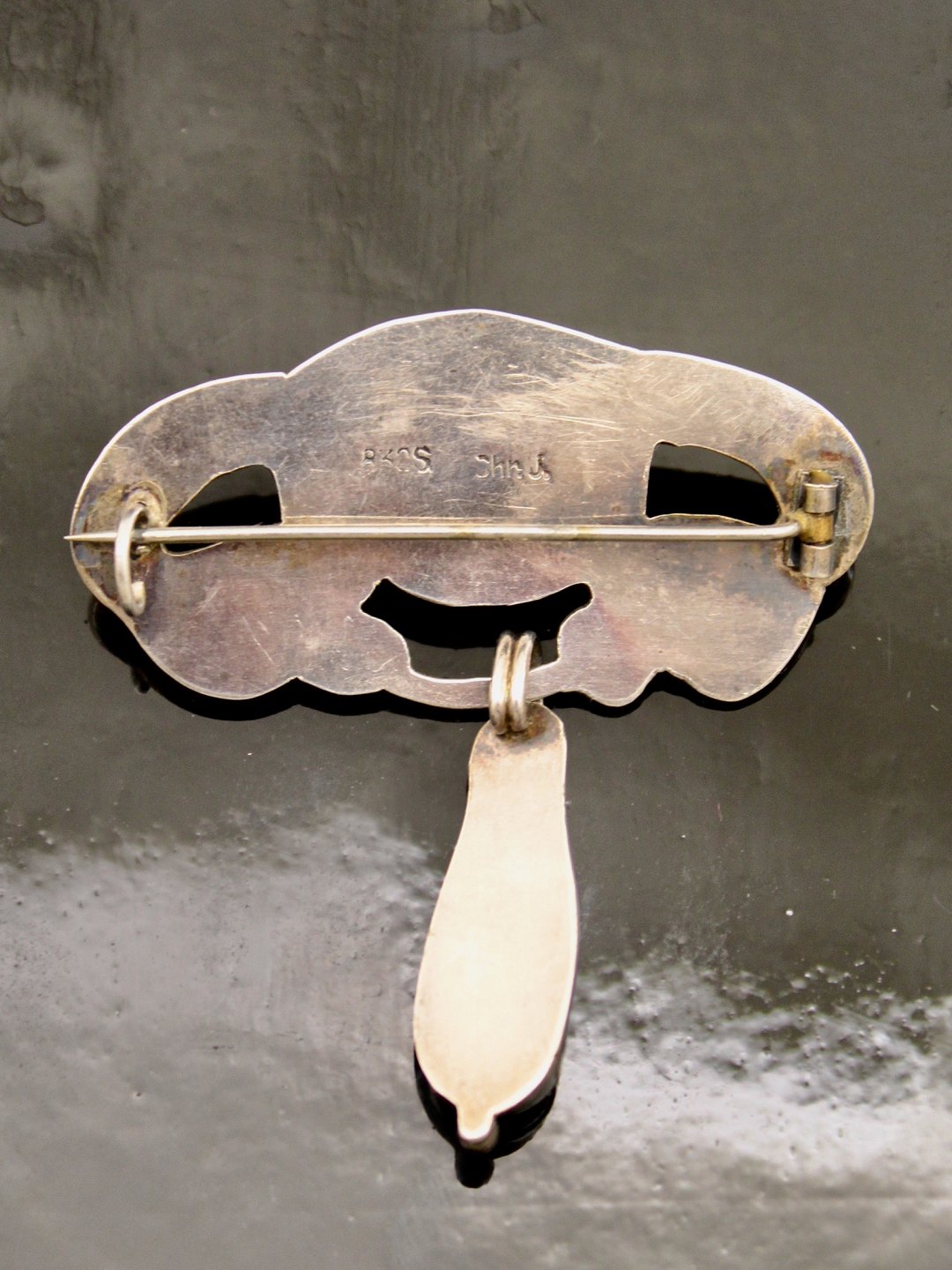 Art Nouveau / jugend broche 830 sølv 5,2 x 6 cm. med månesten fra sølvsmed Peter Chr. Jensen København. Nr. 423483