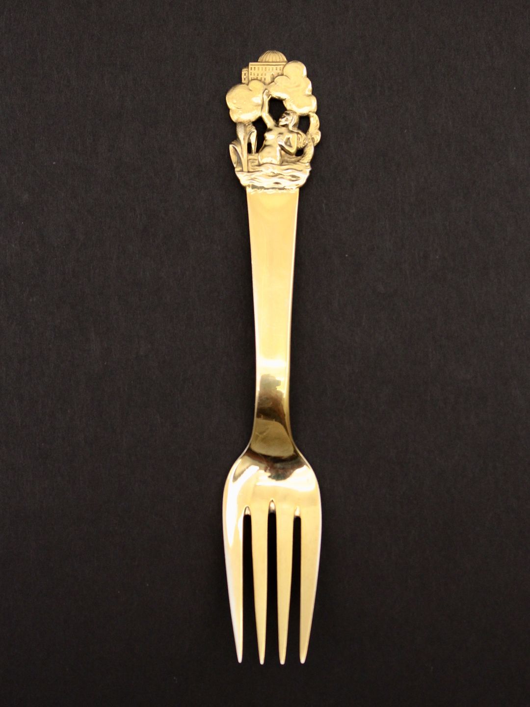 H C Andersen children fork "Tommeliden" gilded silver Nr. 425184