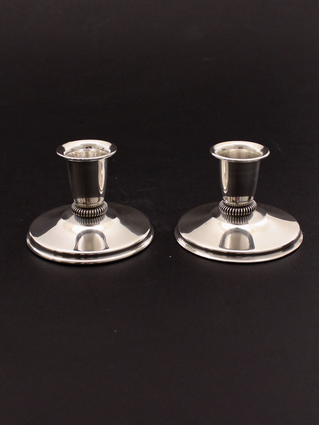 A pair of sterling silver candlesticks H. 5.5 cm. foot 8 cm. No. 427806