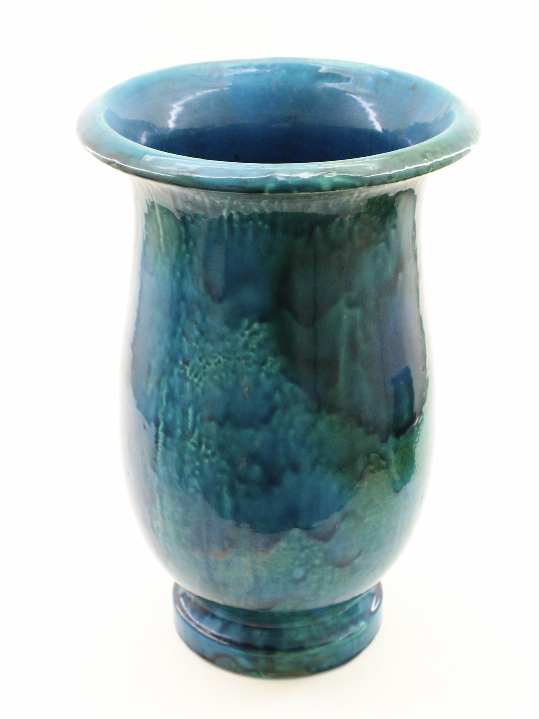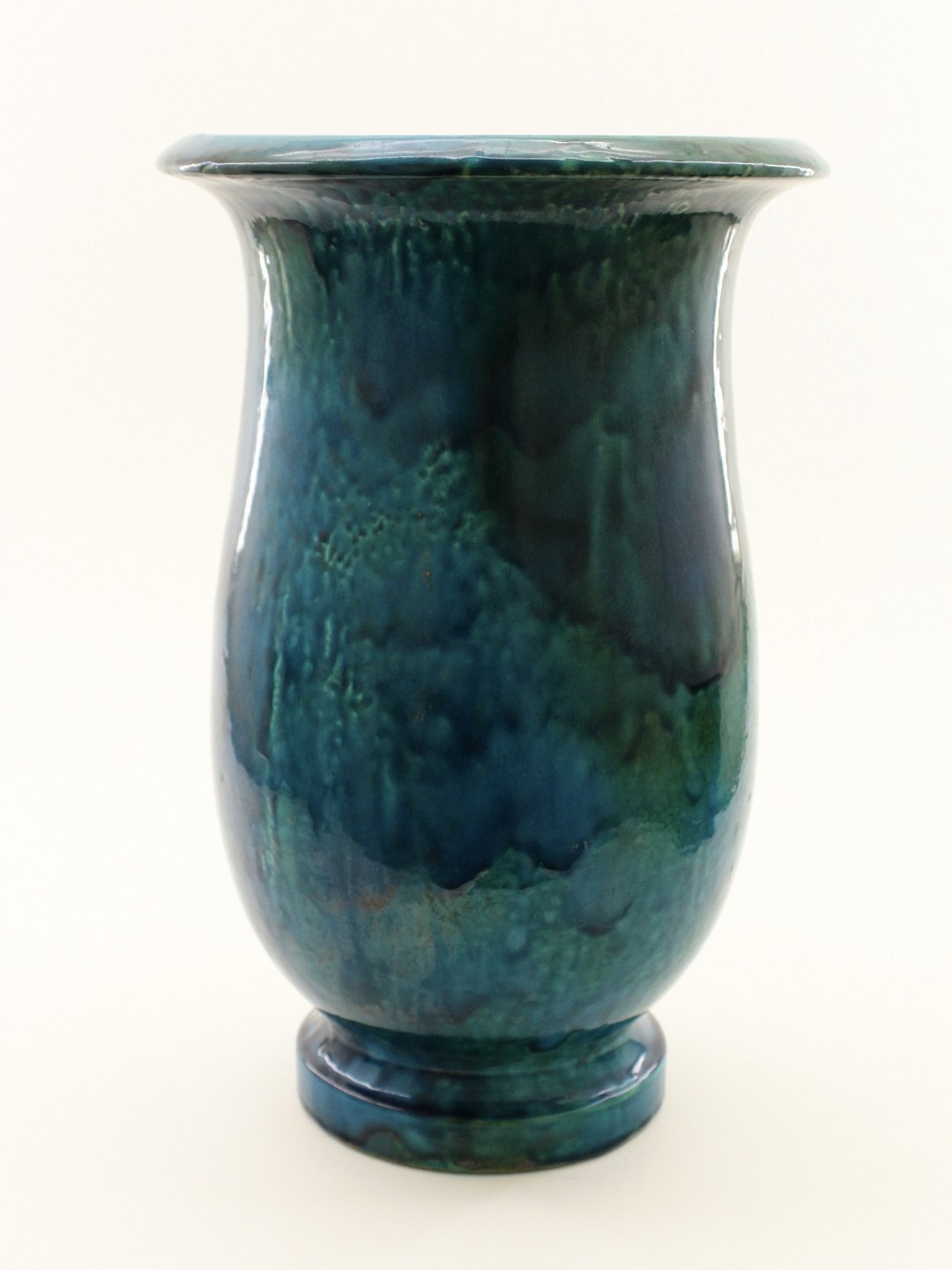 H A Kähler large 46 cm. bell-shaped blue floor vase signed HAK