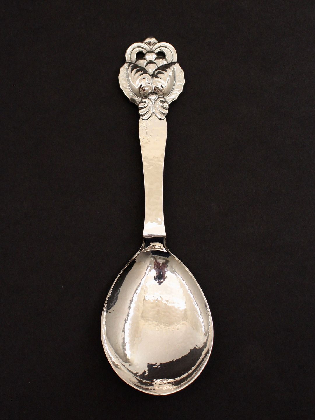 Hammerslået tretårnet sølv år 1935 serverings ske 25 cm.