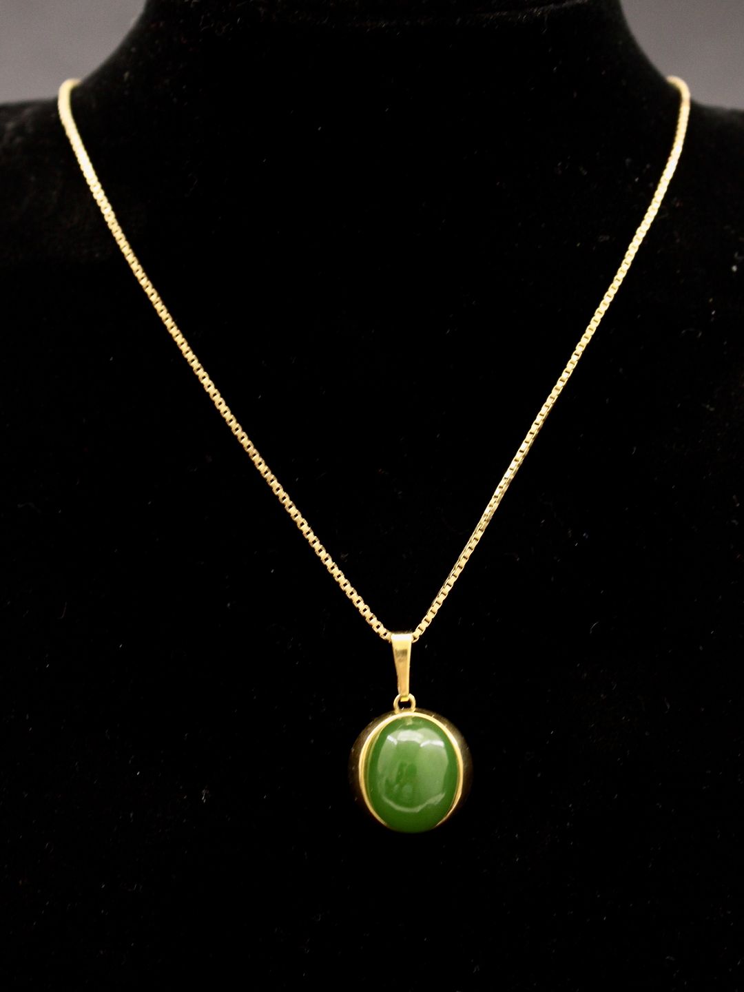 8 karat guld halskæde 46 cm. og vedhæng 1,9 x 1,8 cm. med jade fra guldsmed Poul Ibsen Charlottenlund Nr. 341133