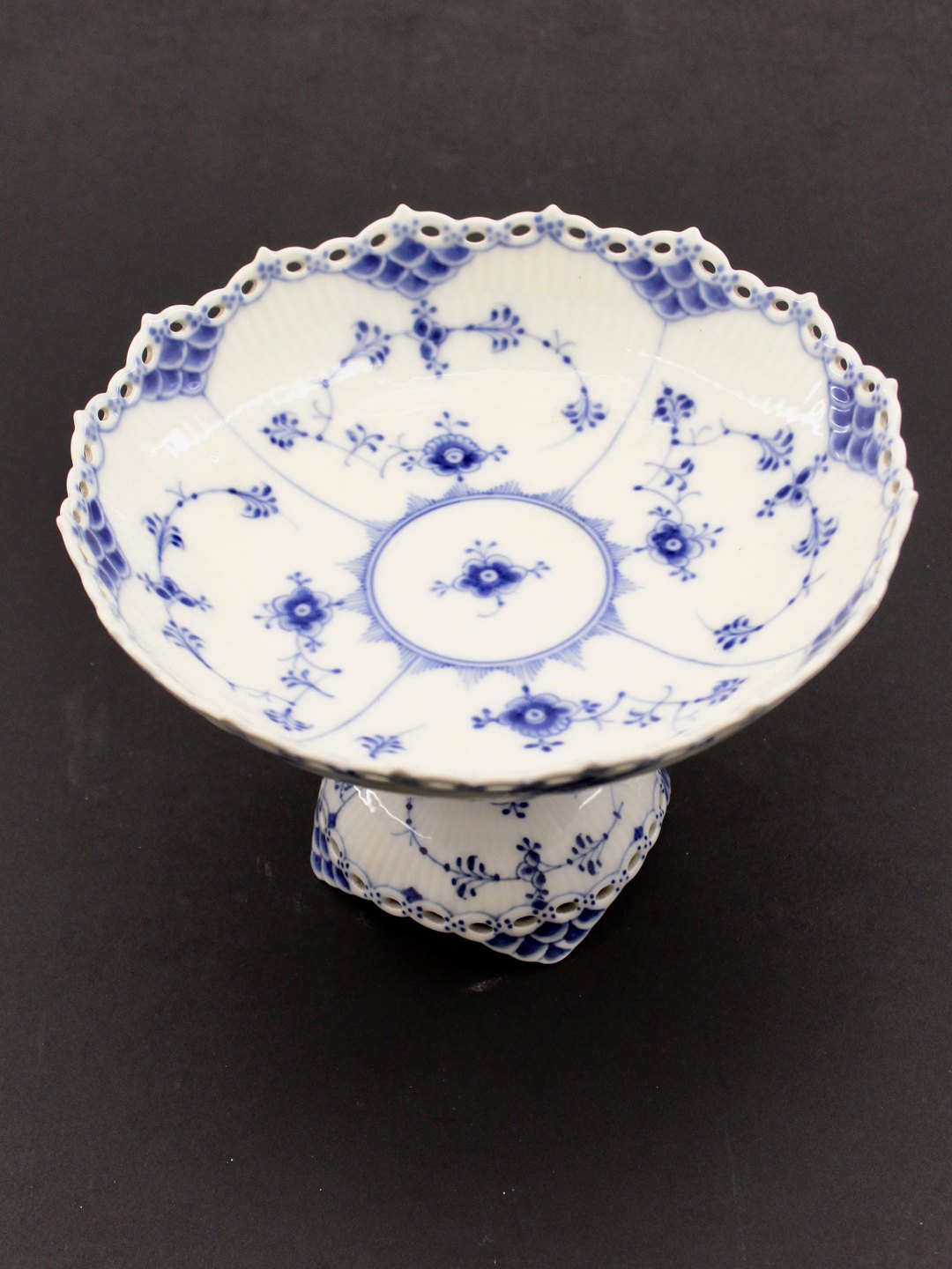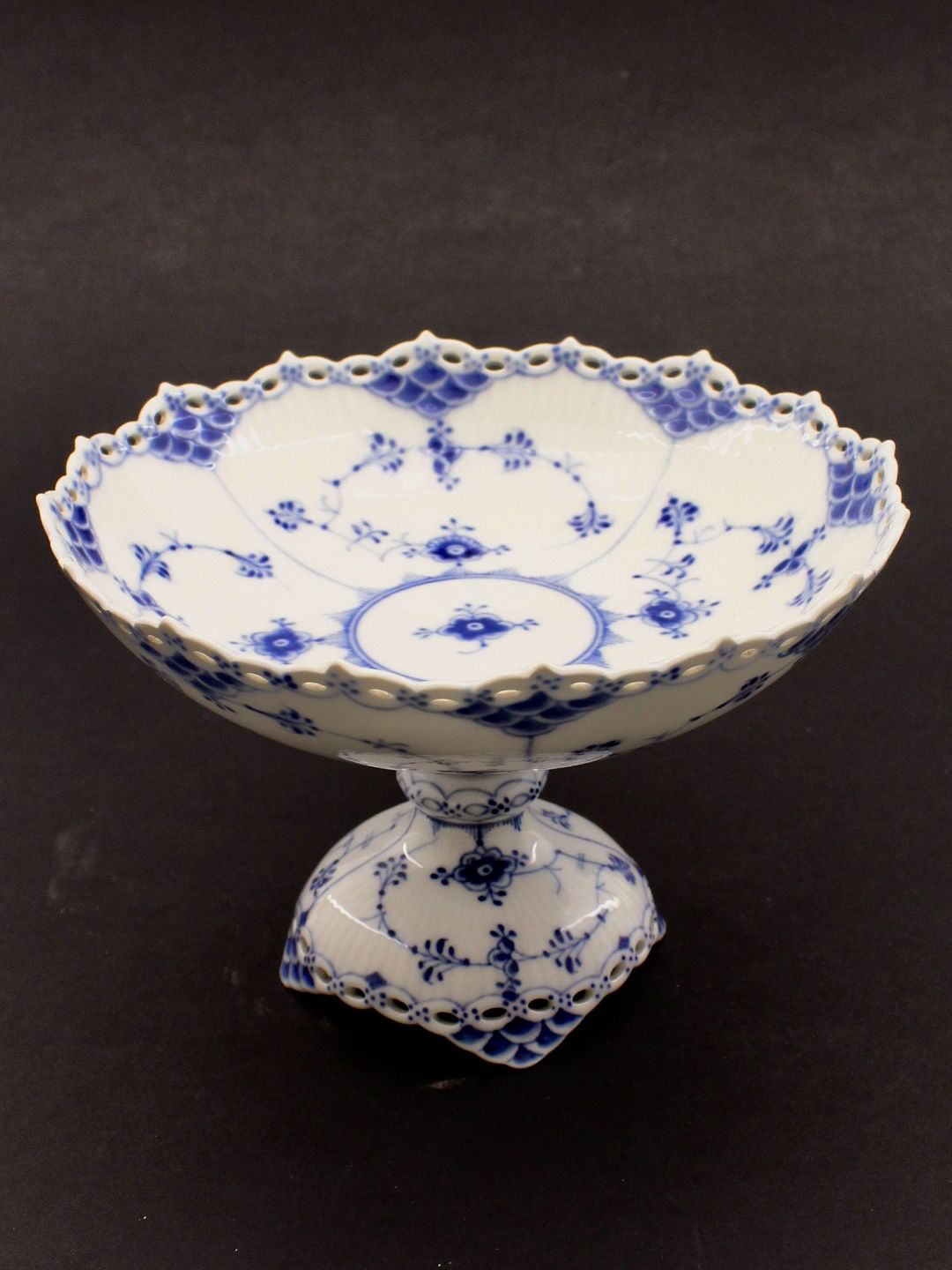 Royal Copenhagen musselmalet helblonde frugt / kage opsats 1/1020-1021 H. 14,5 cm. D.21 cm. 1.sort. Nr. 431134