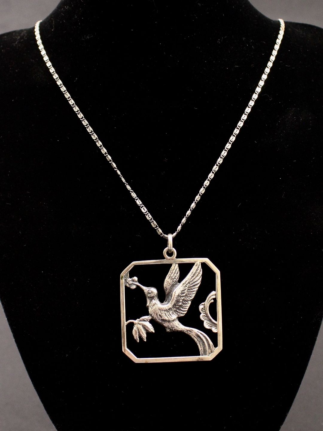 830 sølv halskæde 60 cm. og art deco vedhæng 4 x 4 cm.
