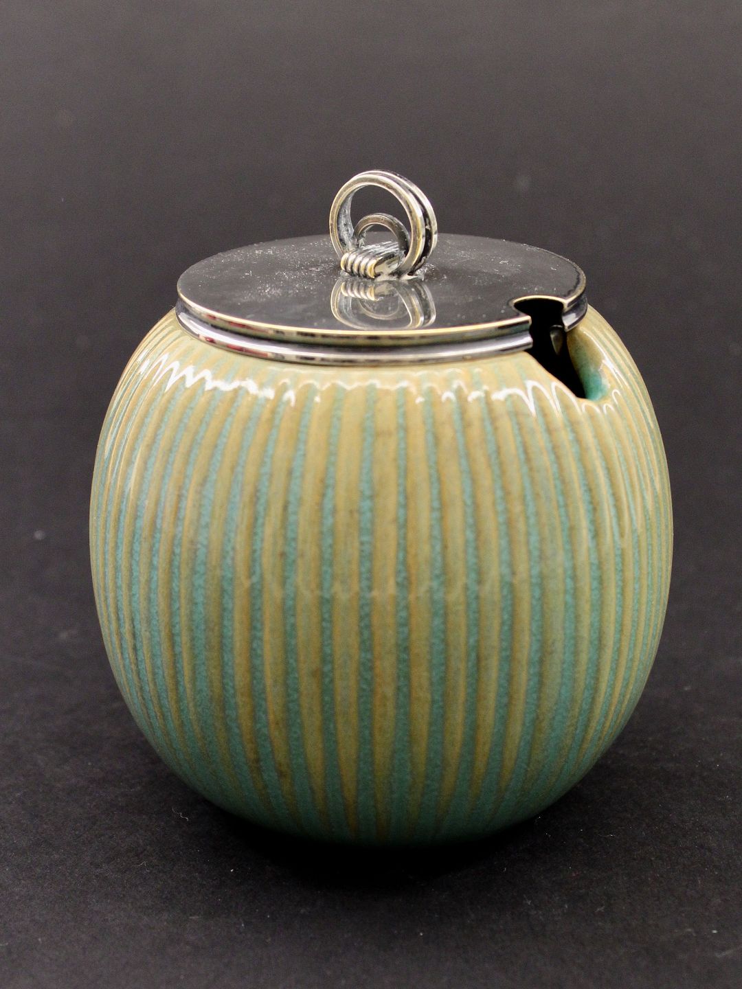 Bornholms keramik marmelade krukke med plated låg fra Hugo Grün Nr. 428823