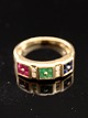 14 karat guldring størrelse 53-54 med 4 diamanter og farvede stene Nr. 438825