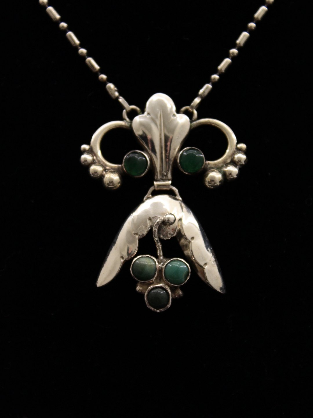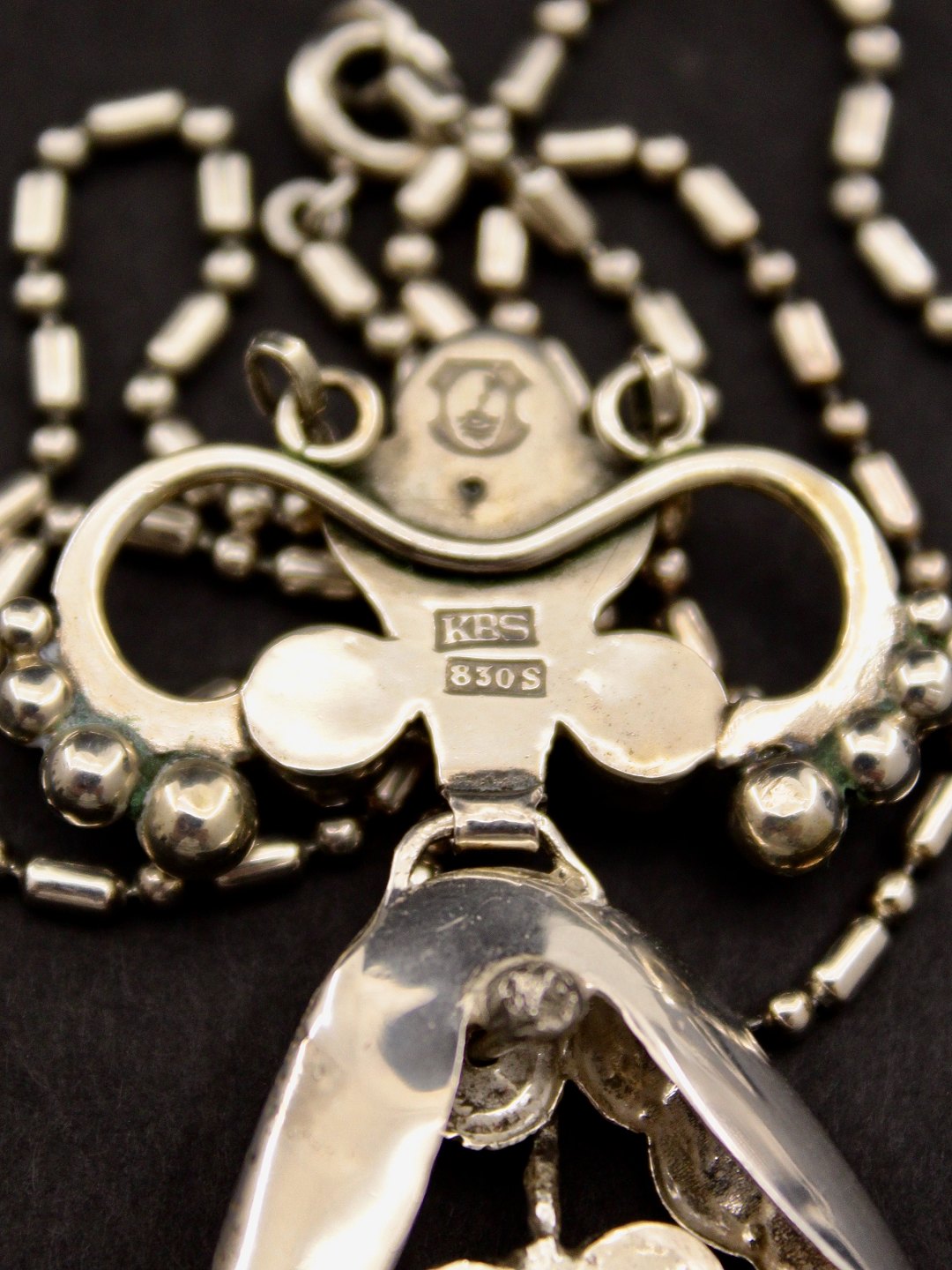 Kay Bojesen skønvirke 830 sølv vedhæng 4,5 x 3,5 cm. prydet med cabochon sleben agater Nr. 440169