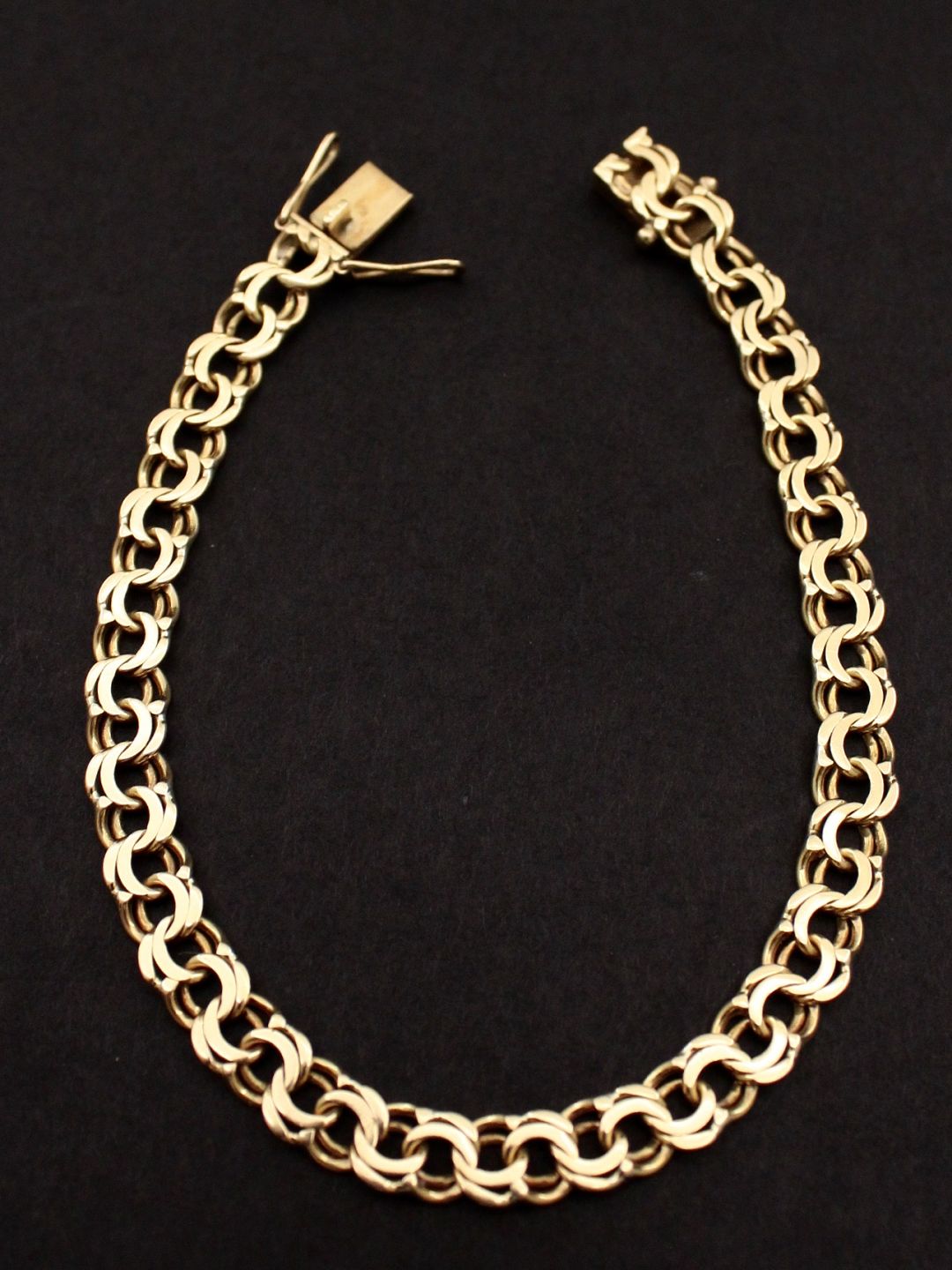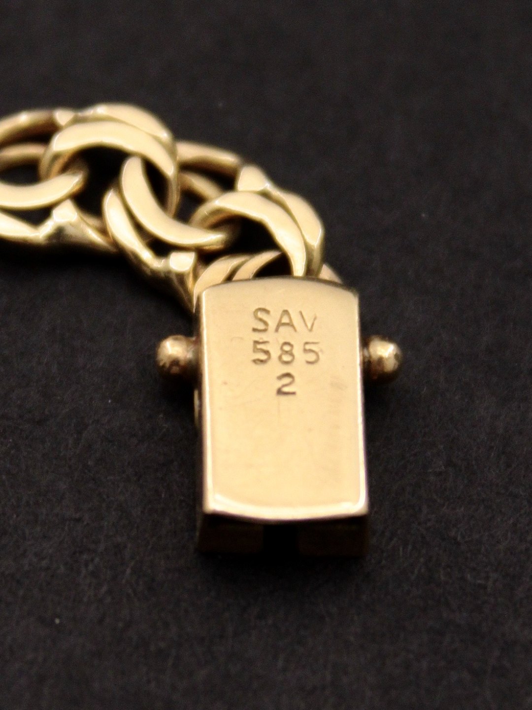 14 carat gold bismarck bracelet 19 cm. B. 6.5 mm. weight 11.5 gr. stamped SAV 585. Nr. 442182