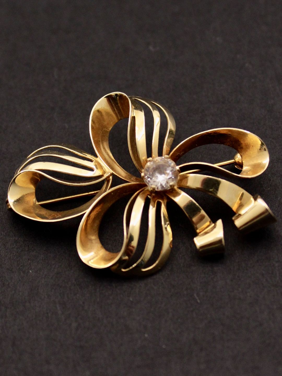 14 carat gold brooch 4 x 2.8 cm. with clear stone