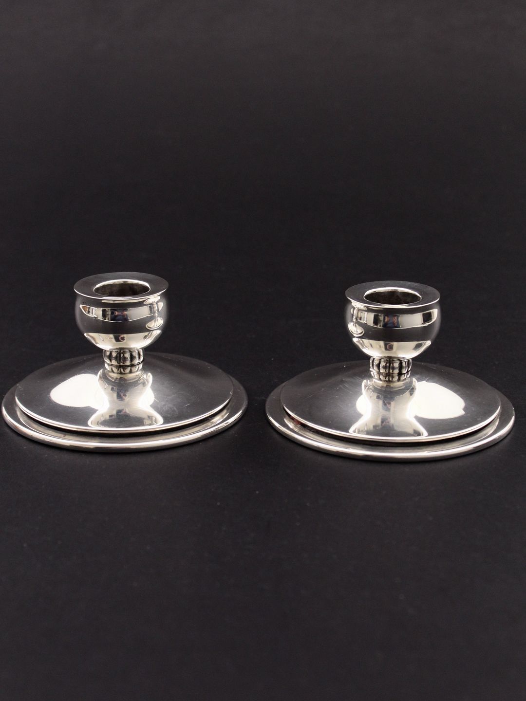 838 silver candlesticks H. 5 cm. feet 9.5 cm. stamped 830s PWS for silversmith P Winther Sørensen Copenhagen. Nr. 446091