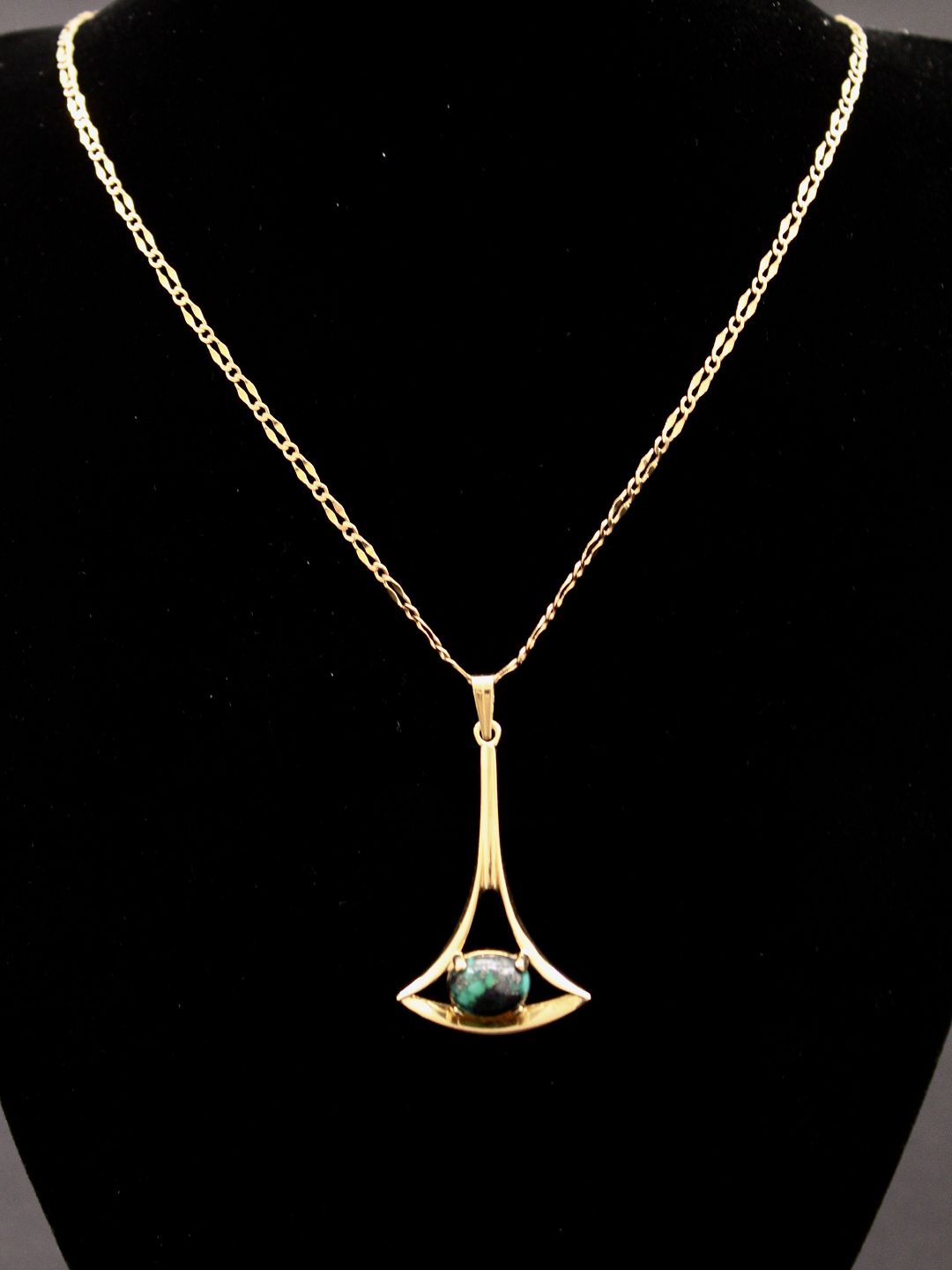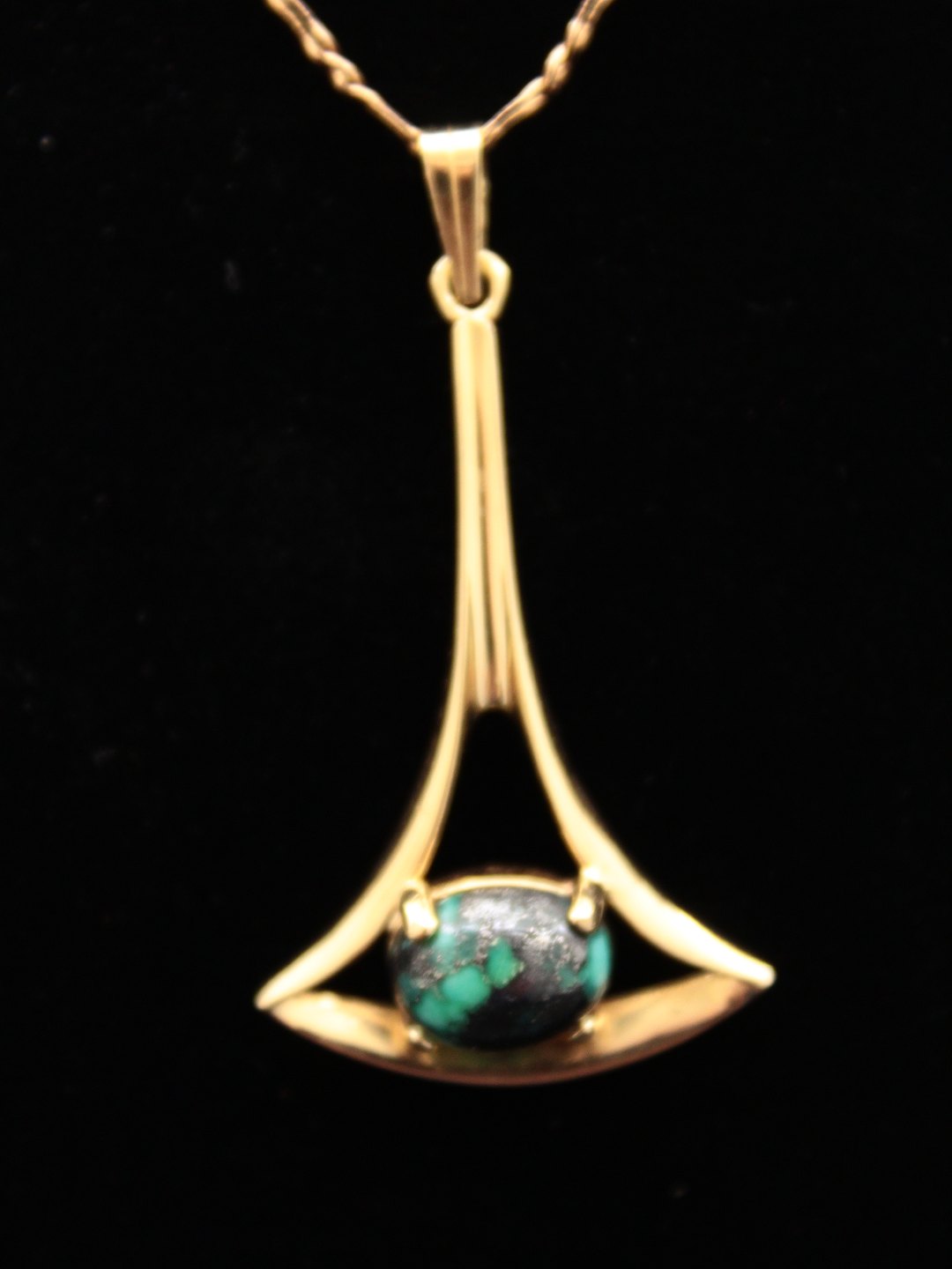 14 carat gold necklace 45.5 cm. and pendant 3.9 x 2.3 cm. with turquoise from jewels Herman Siersbøl Nr. 446846