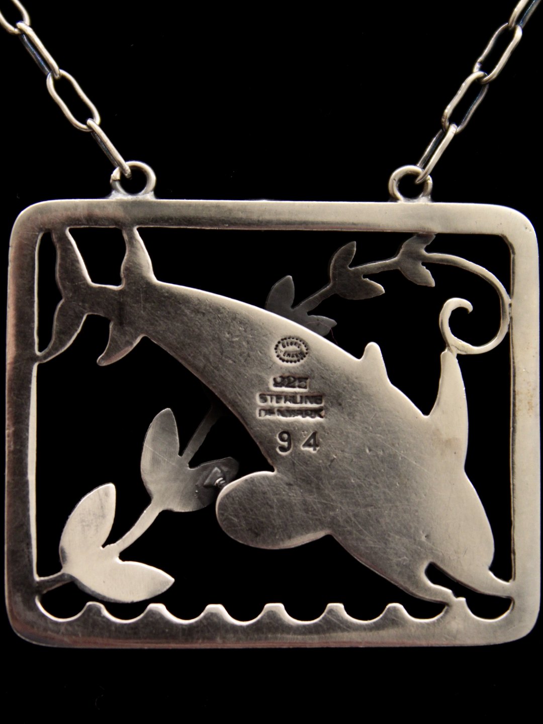 Georg jensen sterling silver dolphin pendant # 94 3 x 3.6 cm. with chain design Arno Malinowski Nr. 447528
