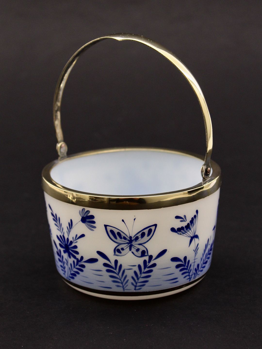 Sukker skål opaline glas med emalje dekorationer 19.årh.