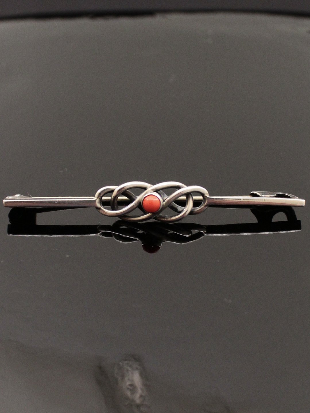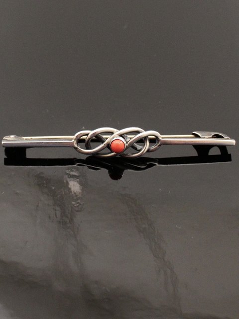 Strerling sølv broche 5,5 cm. med koral fra juveler B Hertz
