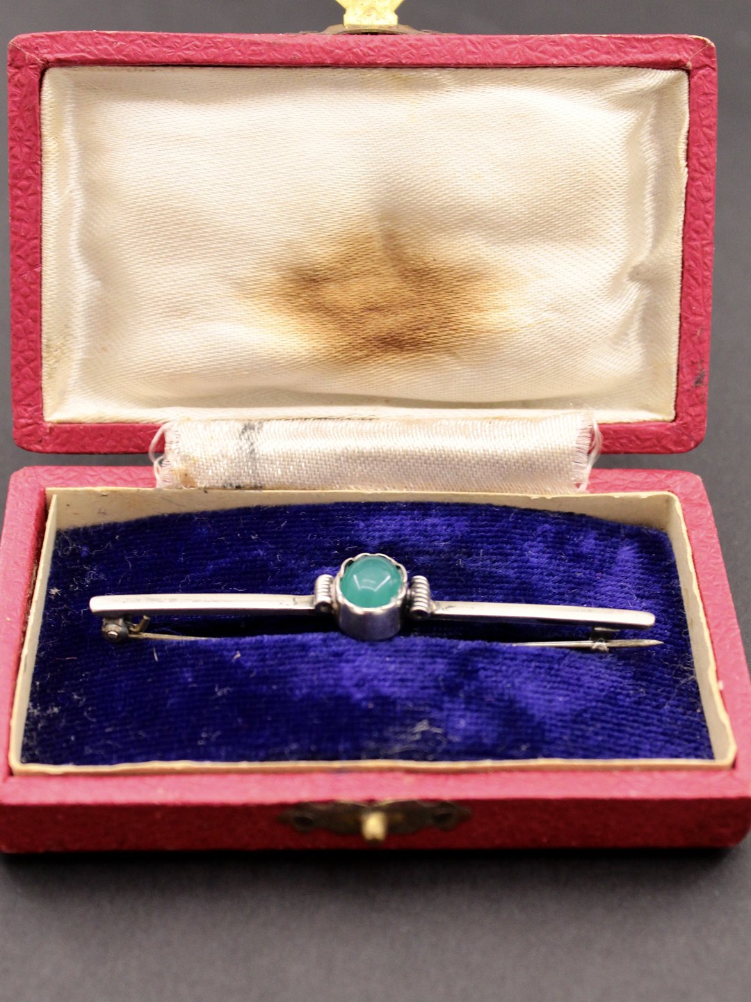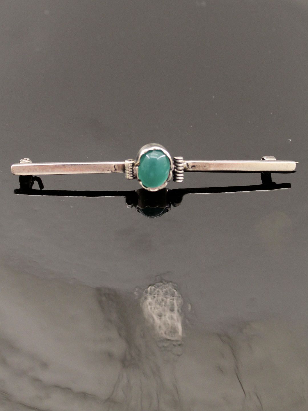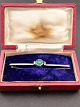 Hugo Grünn 830 sølv stav broche 6,5 cm. med cabochon sleben chrysopras emne nr. 456746 original box medfølger