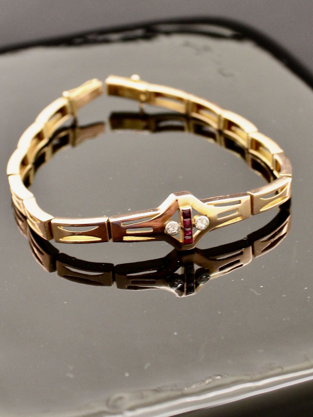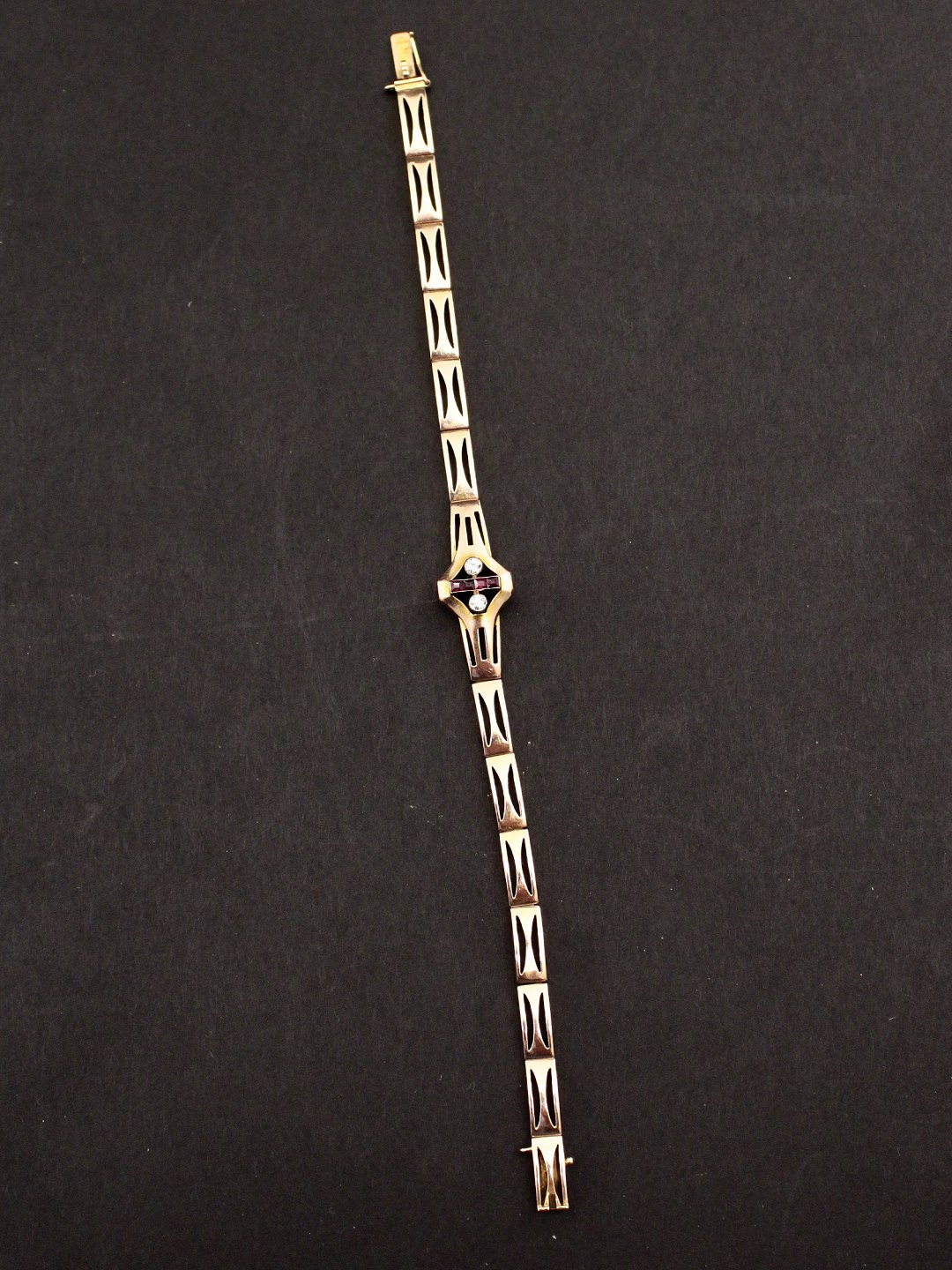 14 karat guld armlænke L. 18,3 cm. B. 0,5 cm.med safirer og diamanter emne nr. 459041