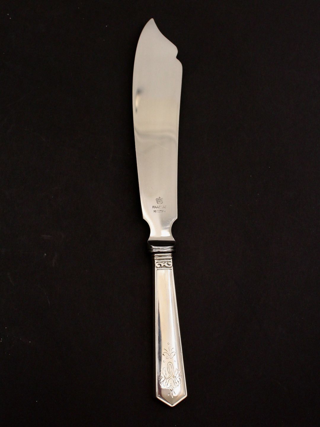 Lagkage kniv tretårnet sølv og stål 26,5 cm. emne nr. 460551