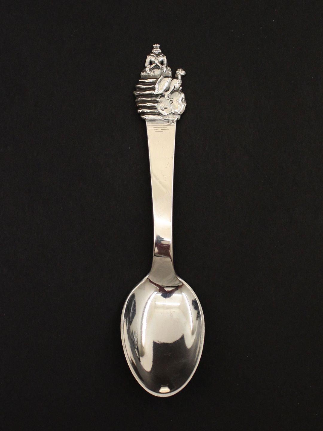 H.C.Andersen tretårnet sølv barne ske 14,5 cm. "Prinsessen på Ærten" som ny ingen graveringer emne nr. 460554