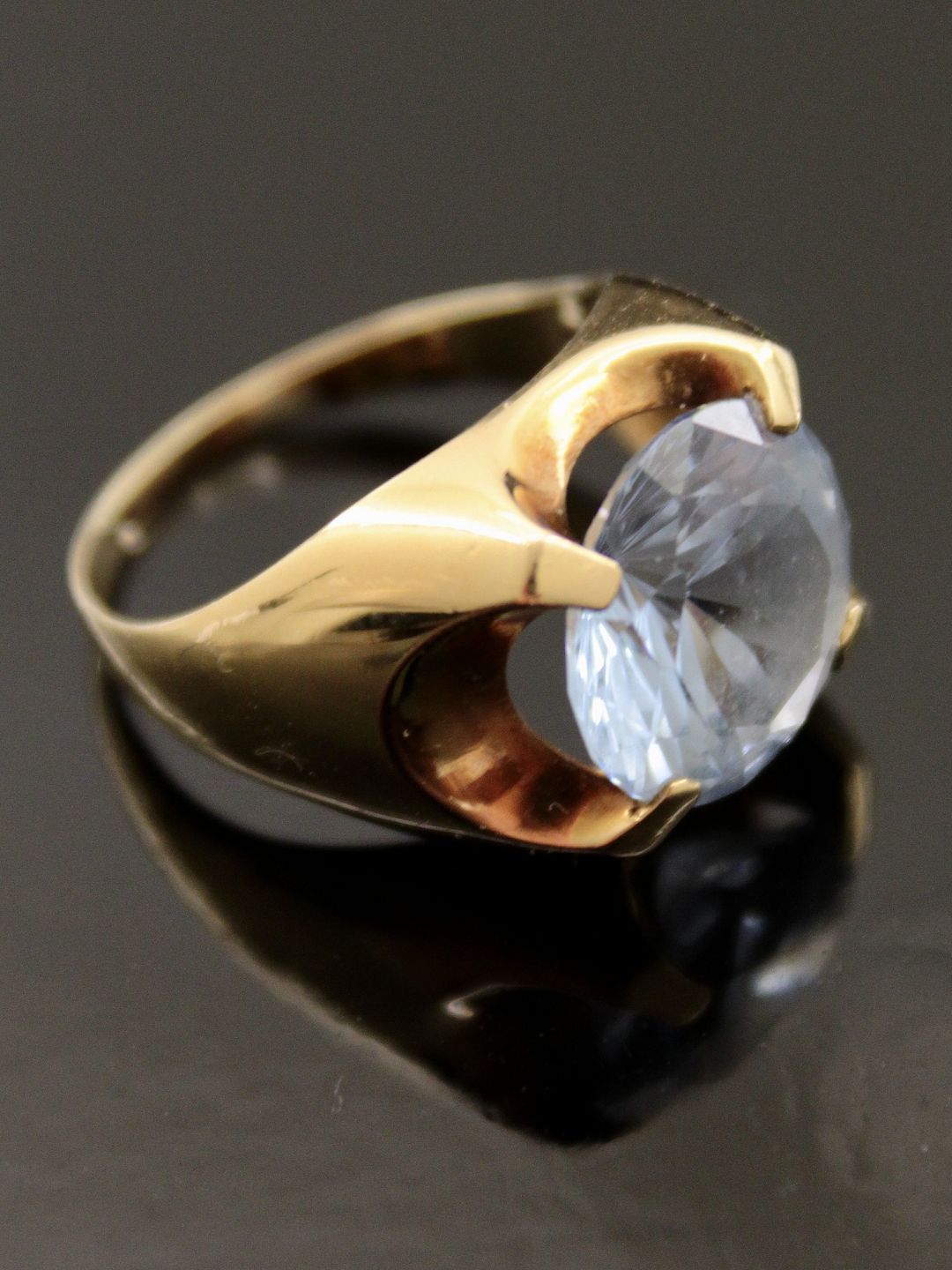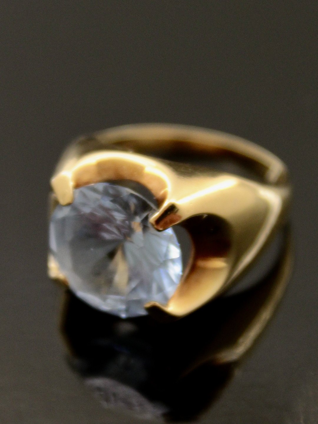14 karat guldring størrelse 55 med aquamarin fra juveler Herman Siersbøl København emne nr. 461118