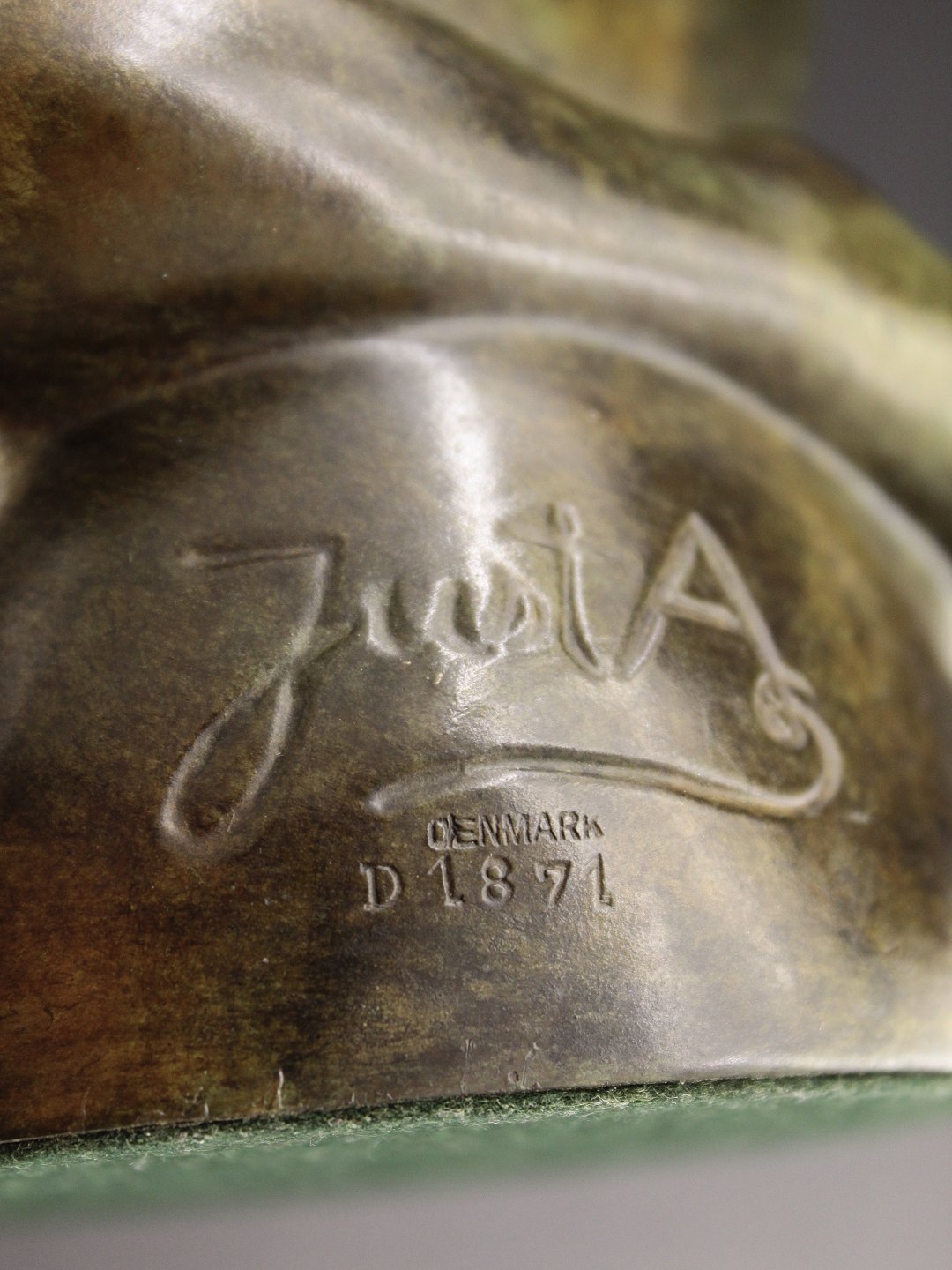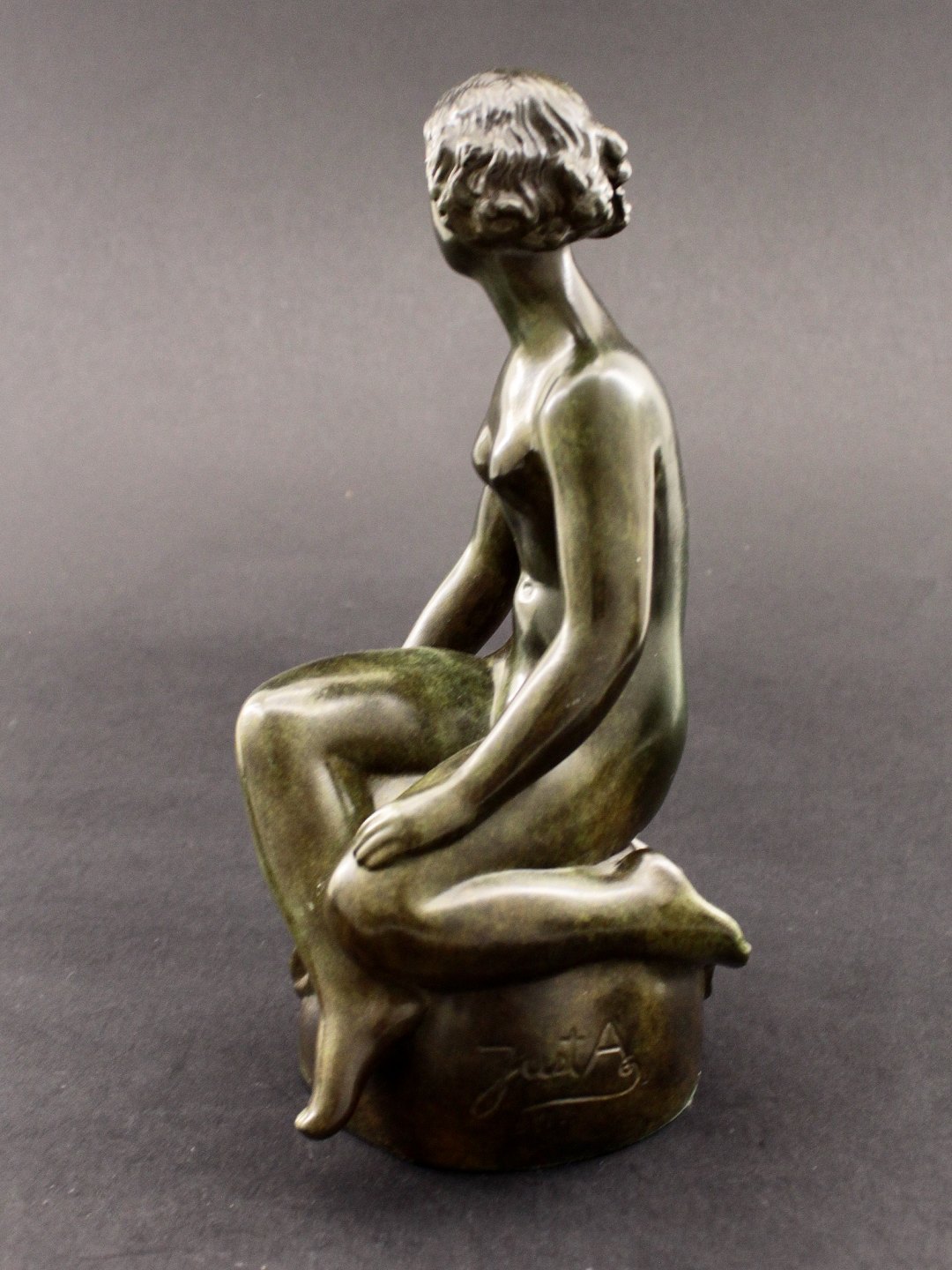 Just Andersen young girl on stone discometal H. 23.5 cm. item no. 462447