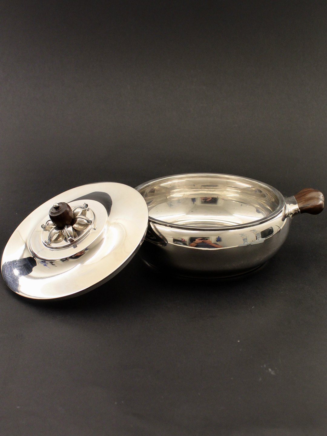 Art Deco round serving bowl with silver 1937 diam. 19 cm. from silversmith Joh.H.paulsen Copenhagen item no. 464969
