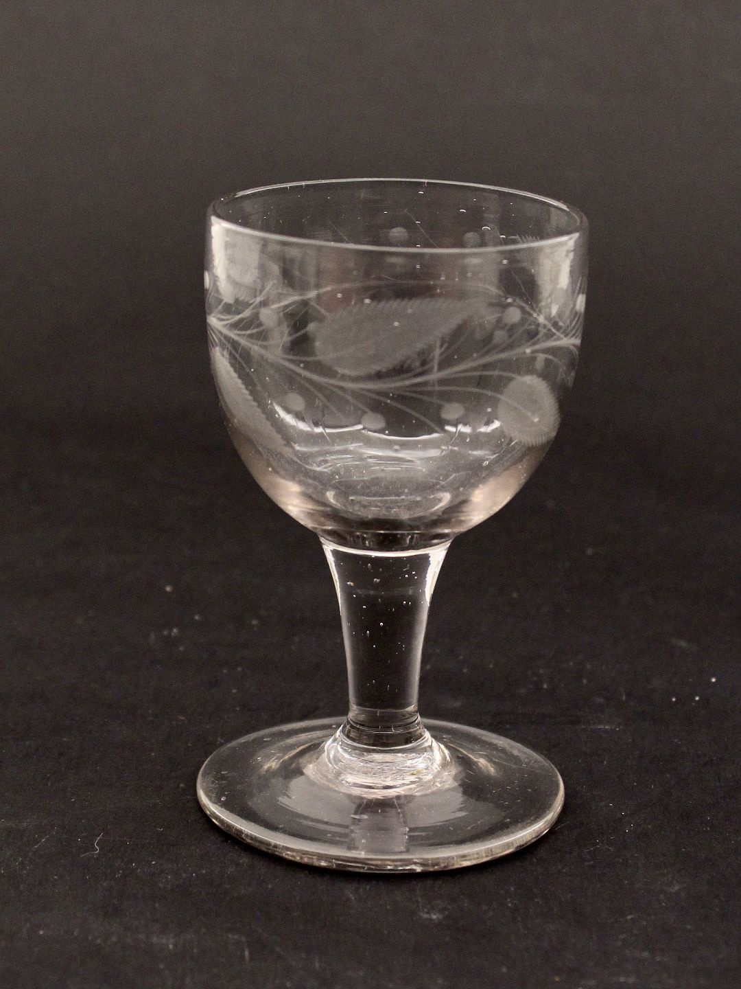 Vinglas 11cm. med sleben blad frise 19.årh. emne nr. 465774